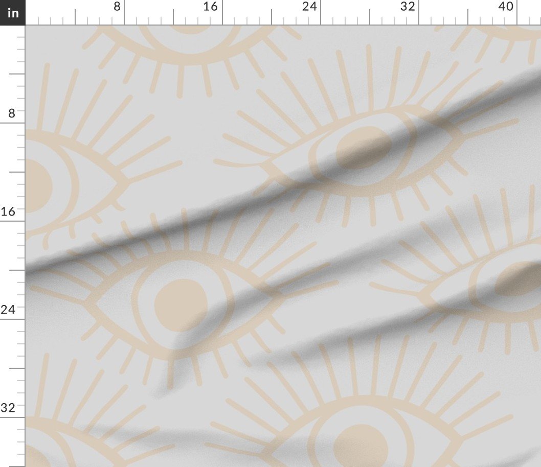 Fabric in Mystical Eye Symbol in Warm Beige and Light Dove Grey Narrow Spaced Fabric