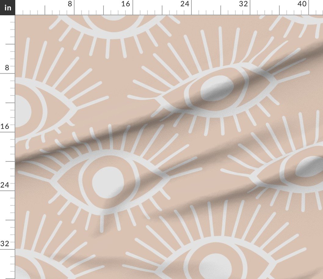 Fabric in Mystical Eye Symbols in Muted Clay Pink and Cloud Grey Fabric