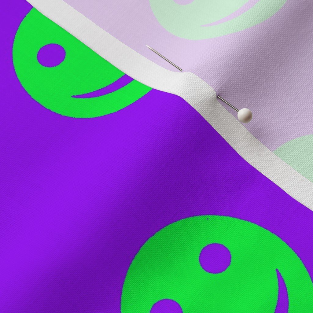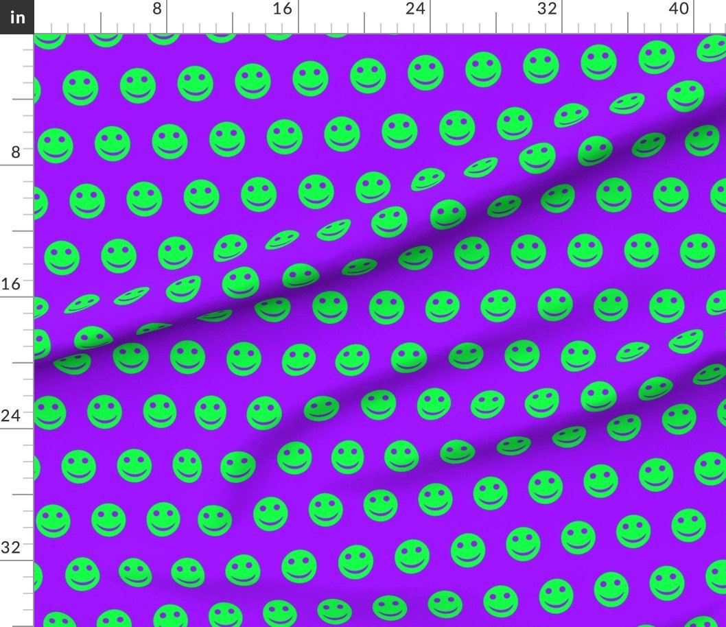Neon Green Smiley Faces on Electric Purple Background