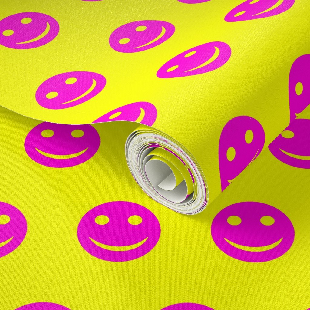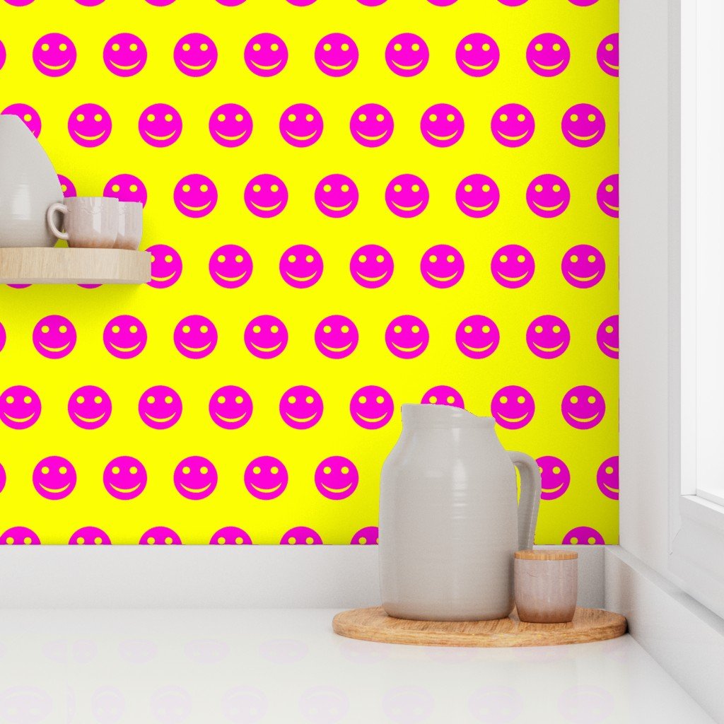 Be the first to review “Neon Pink Smiley Faces on Bright Yellow Background Wallpaper”