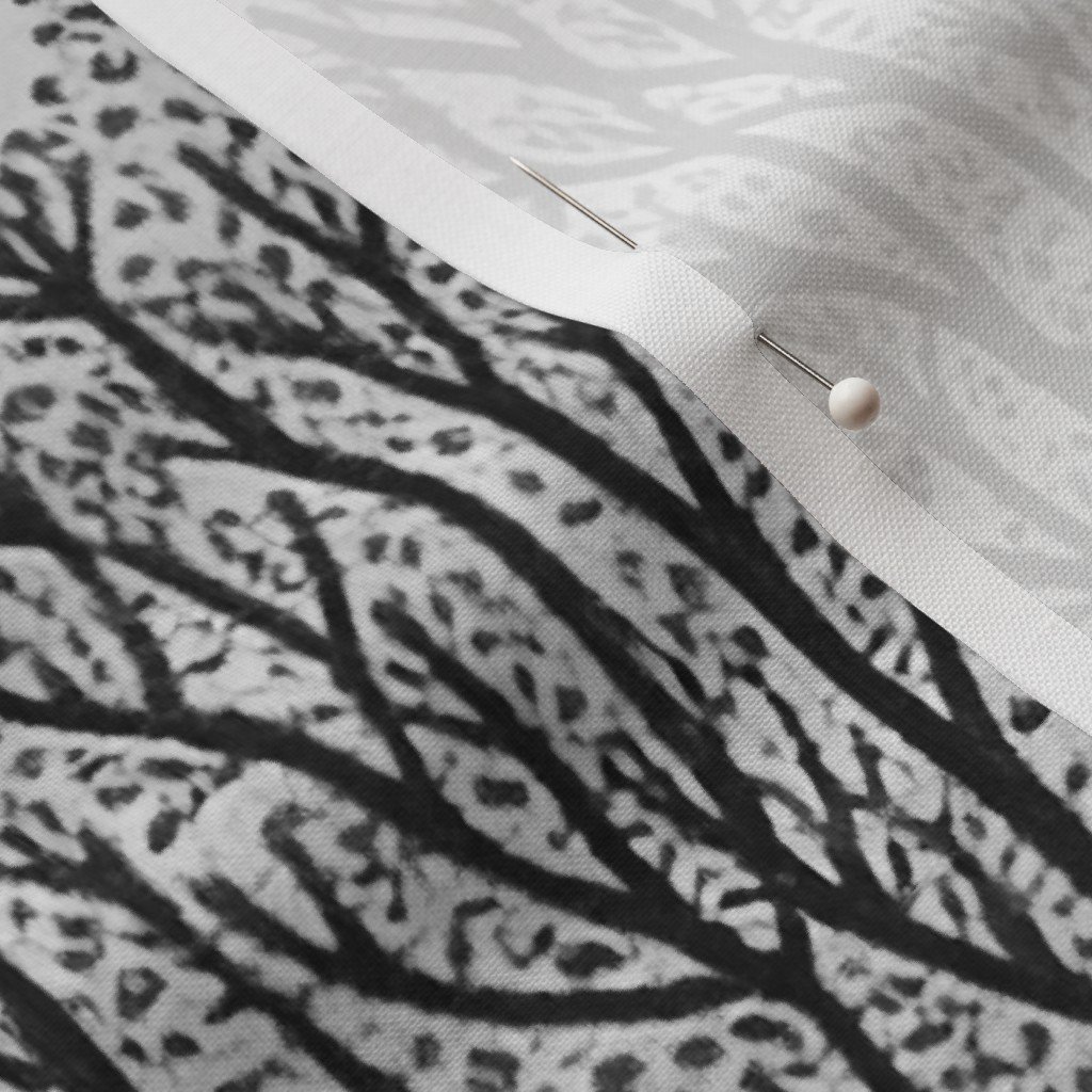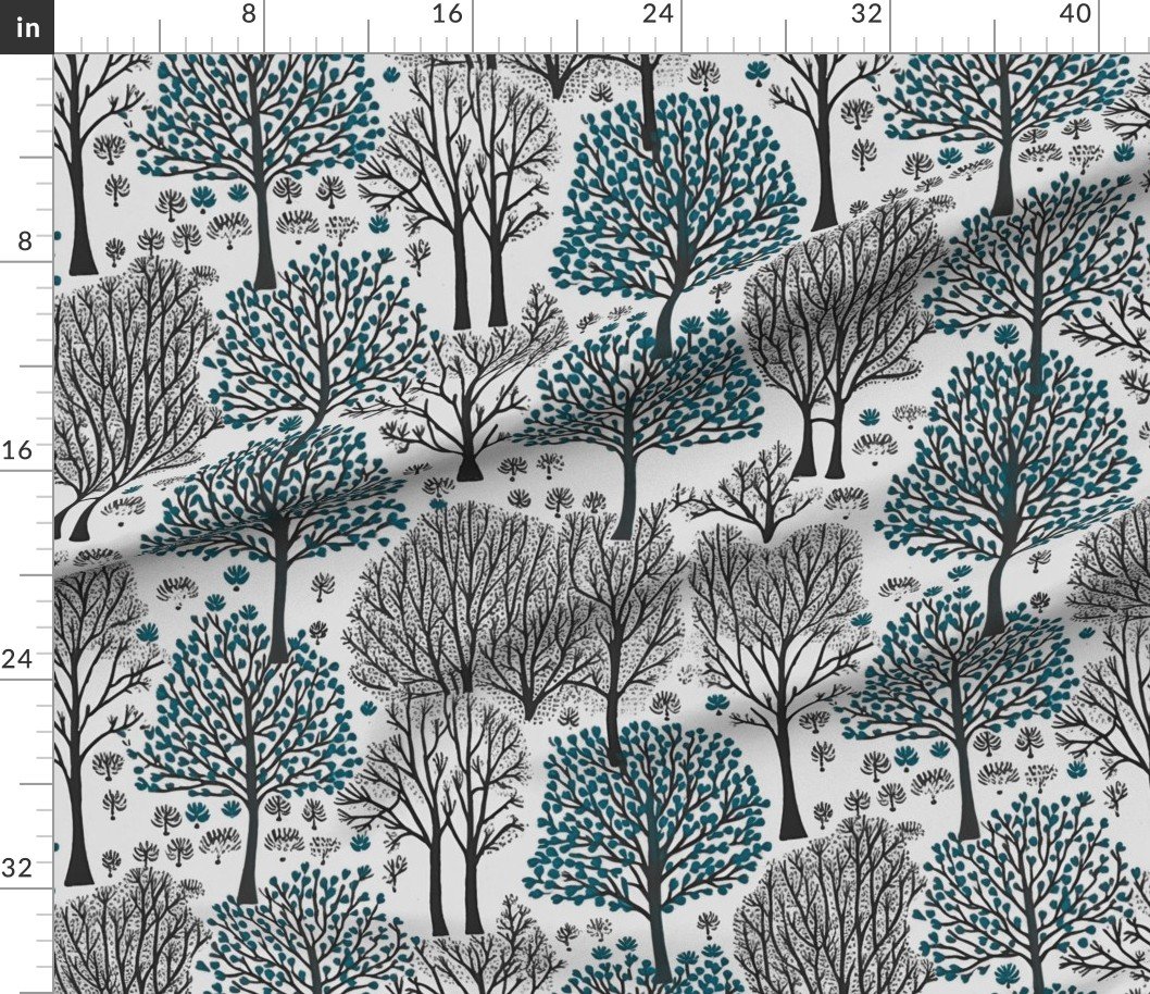 Fabric in New England Endless Forest Bare Trees in Teal and Winter Gray Fabric