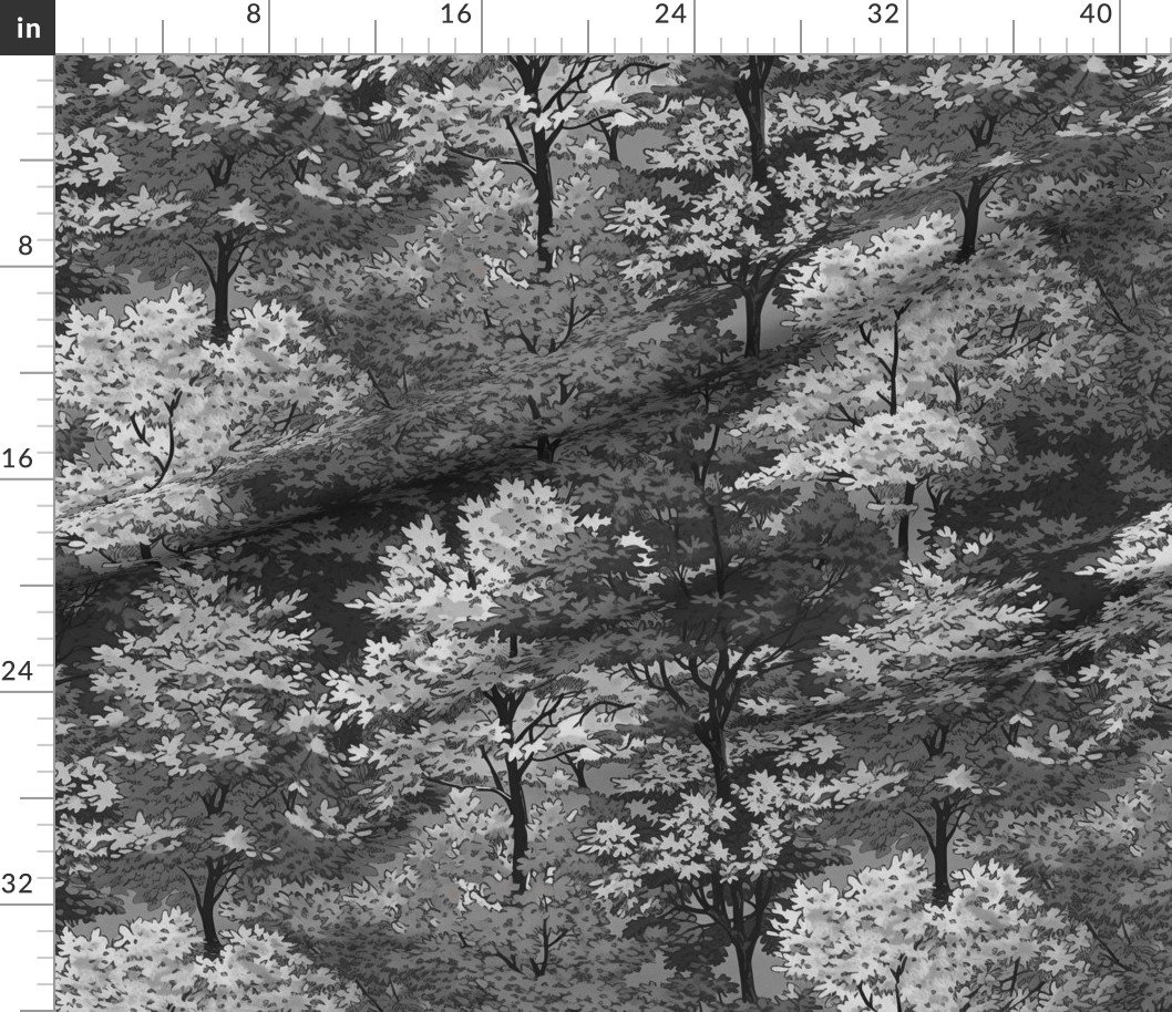 Fabric in New England Endless Forest Fall Trees – Monochrome Gray