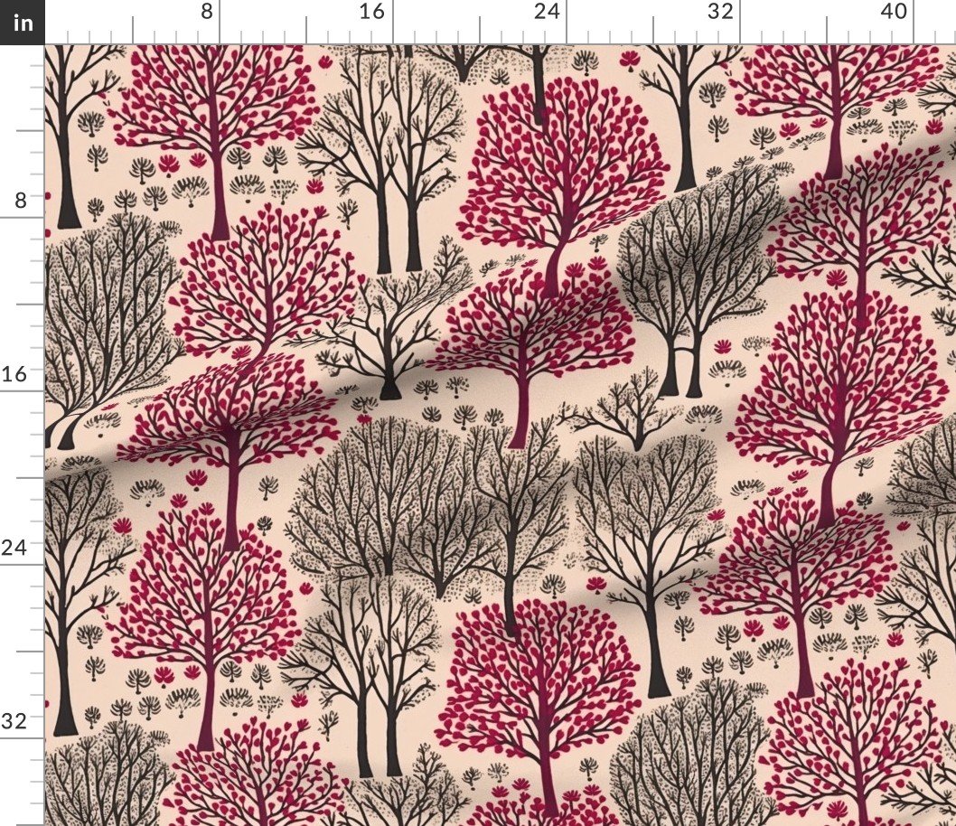 Be the first to review “Fabric in New England Endless Forest Trees in Burgundy and Winter Gray on Light Beige Fabric”