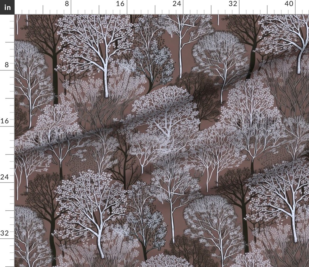 Be the first to review “Fabric in New England Endless Forest Trees in Frosted Brown Winter”