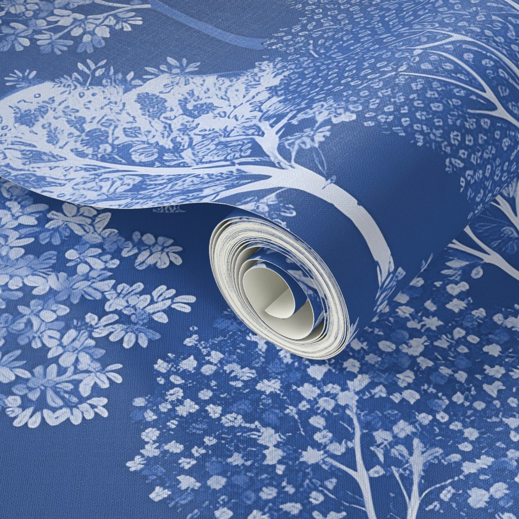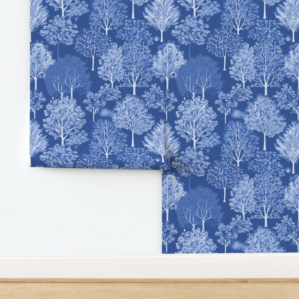 New England Endless Forest Trees Winter Light Blue Porcelain Glaze Wallpaper