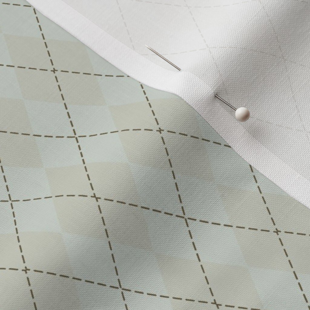 Small argyle diamond check in pale sage green botanical tones creates a calm classic look ideal for baby bedding cushions fabric crafts or cottage style decor with a soft neutral feel perfect for vintage rustic or modern interiors and sewing projects