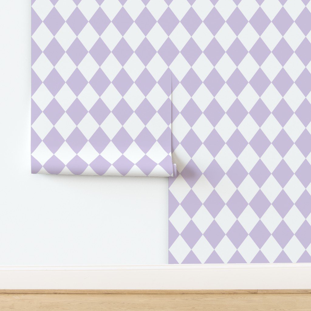 With its soothing lavender mist tone, this pastel diamond pattern adds a gentle glow to modern interiors, baby spaces, or soft feminine fabric design.