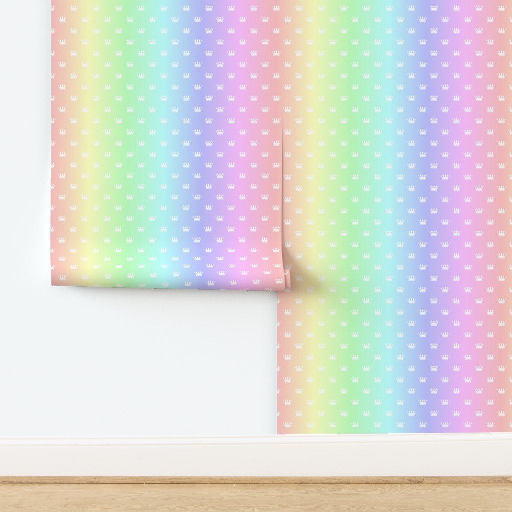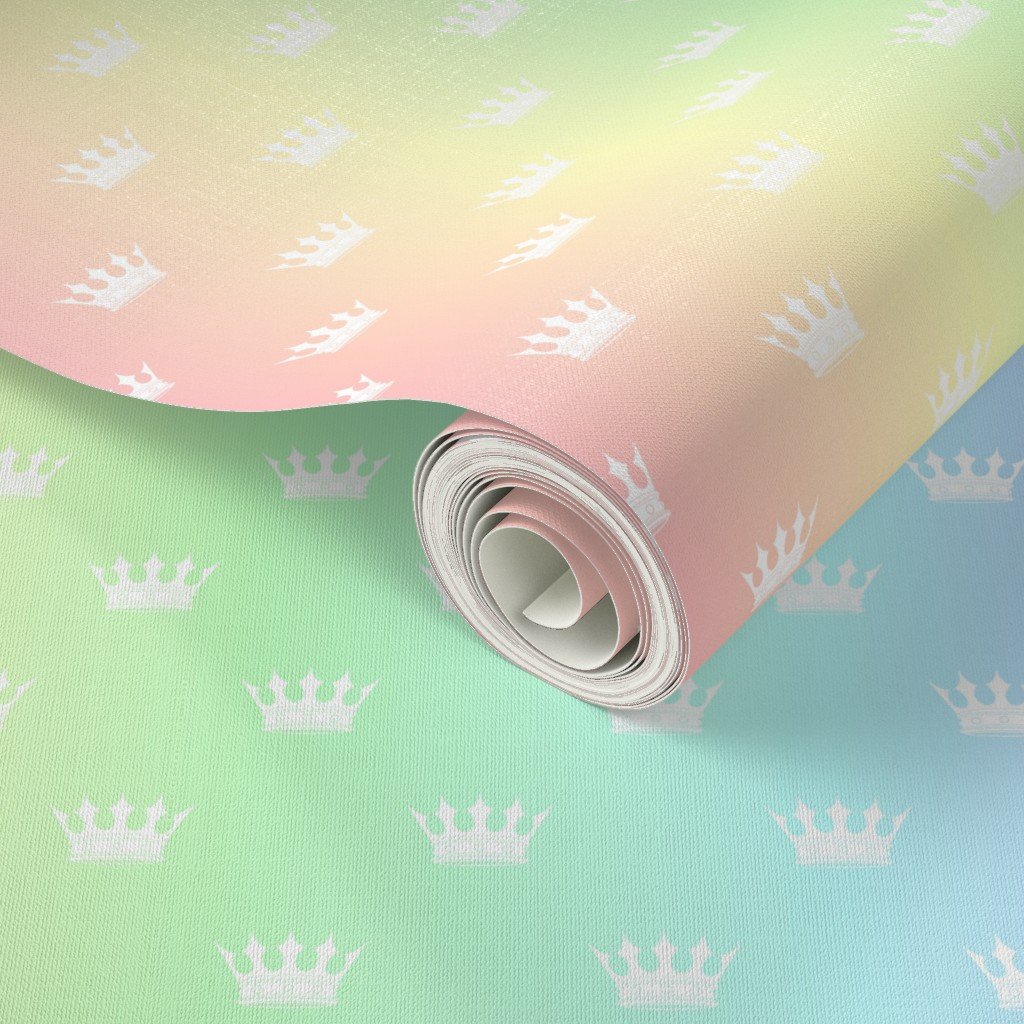 A delicate pastel rainbow with a royal crown motif, bringing a soft, whimsical charm to decor and accessories.