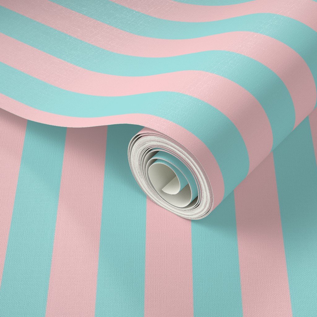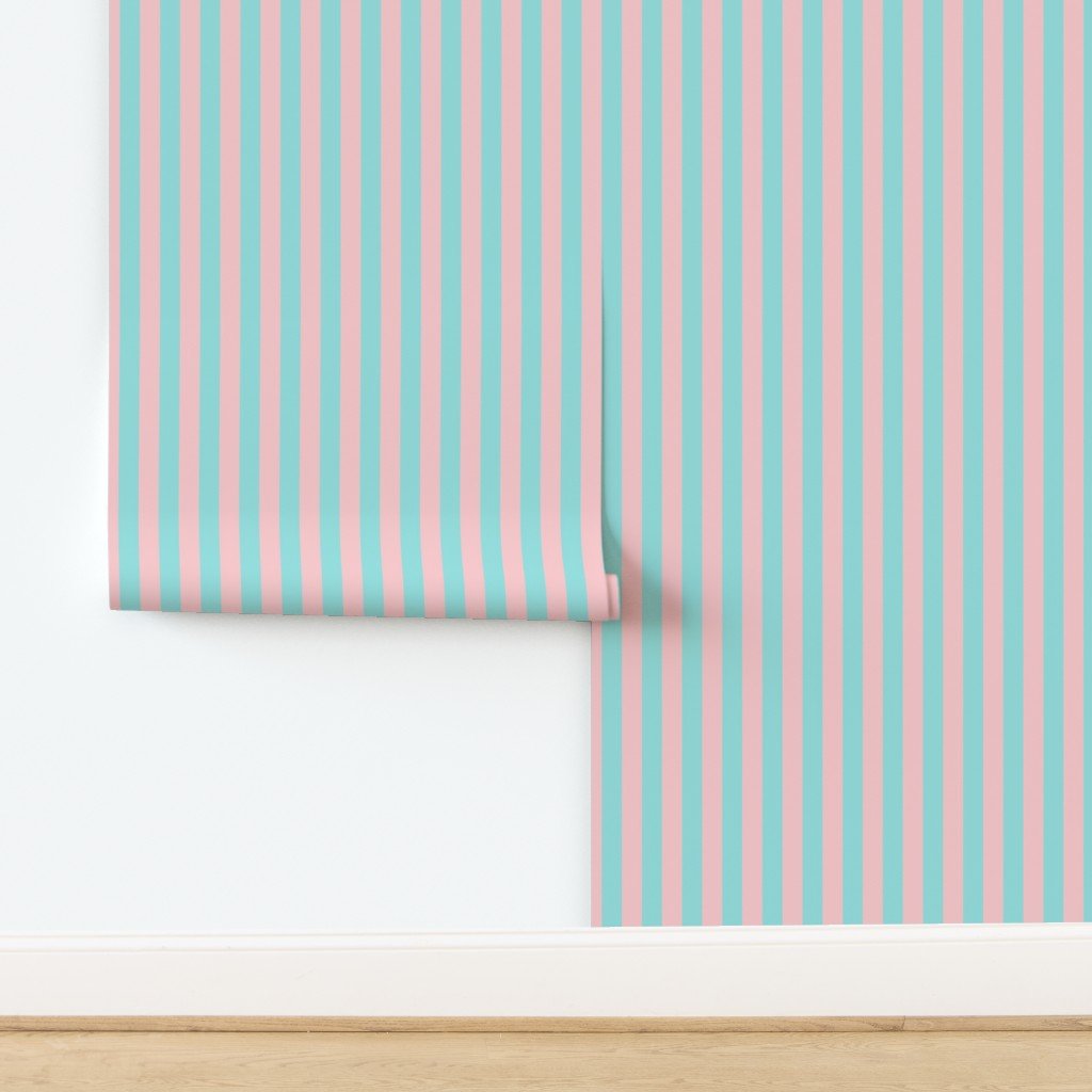 Pink sand and Aqua Pool pastel stripes alternate in Beach hut 1 inch widths