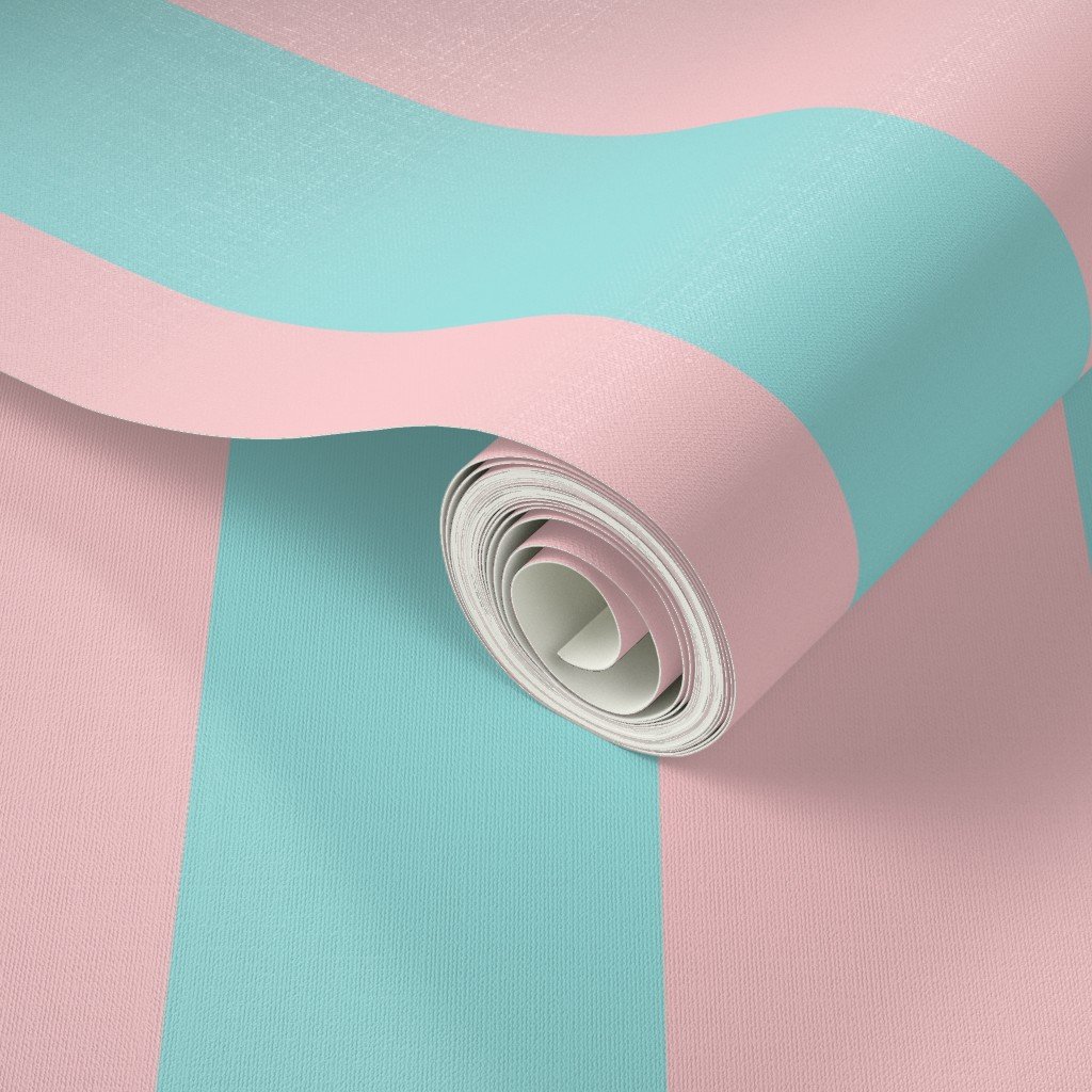 Pink sand and Aqua Pool pastel stripes alternate in Circus big top 3 inch widths