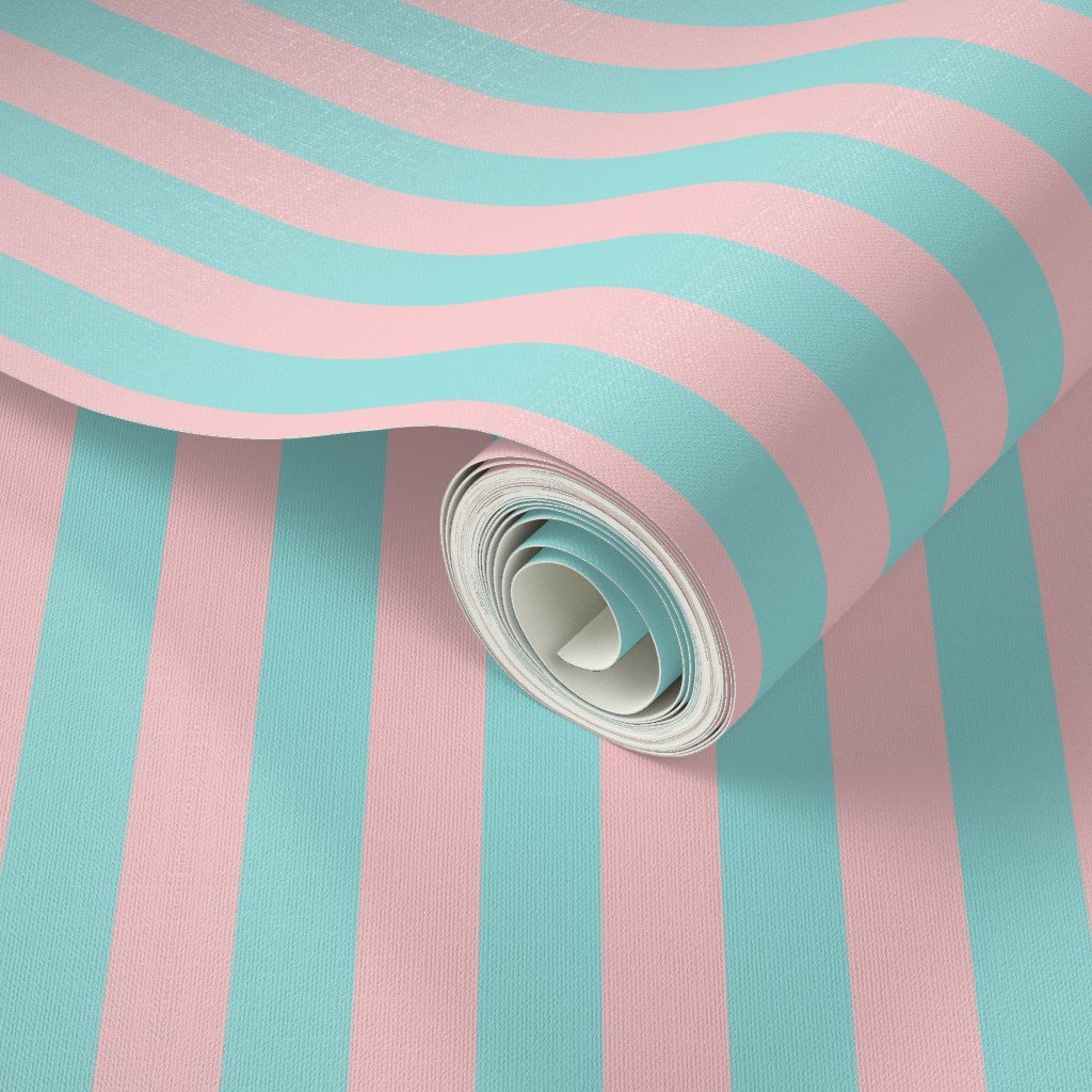Aqua and Pink pastel stripes alternate in Deck Chair three- quarter inch widths