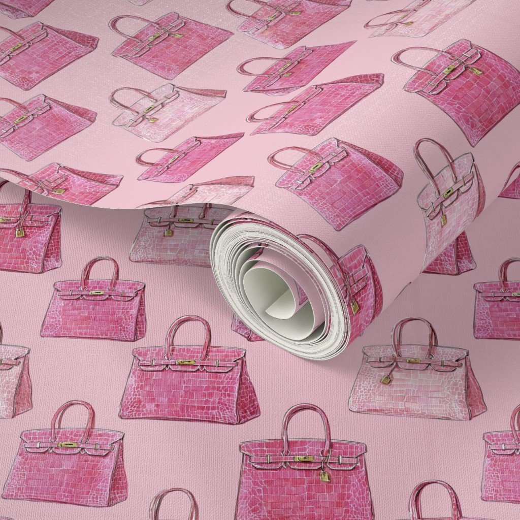 Pink Croc Texture Handbag Fashion Repeat Pattern Wallpaper