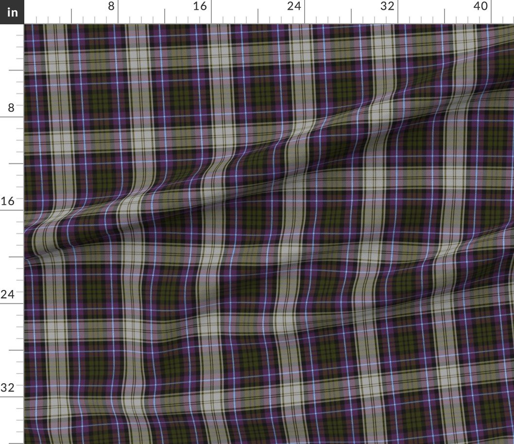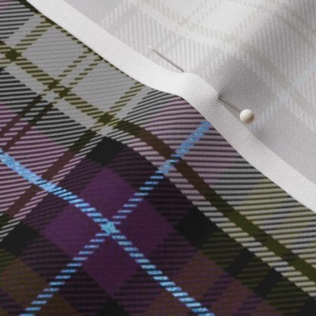 This sophisticated Christmas plaid pattern blends deep purple, neutral gray, and subtle olive green accents