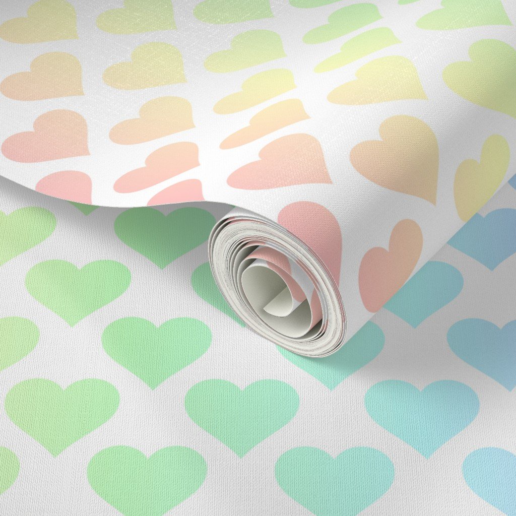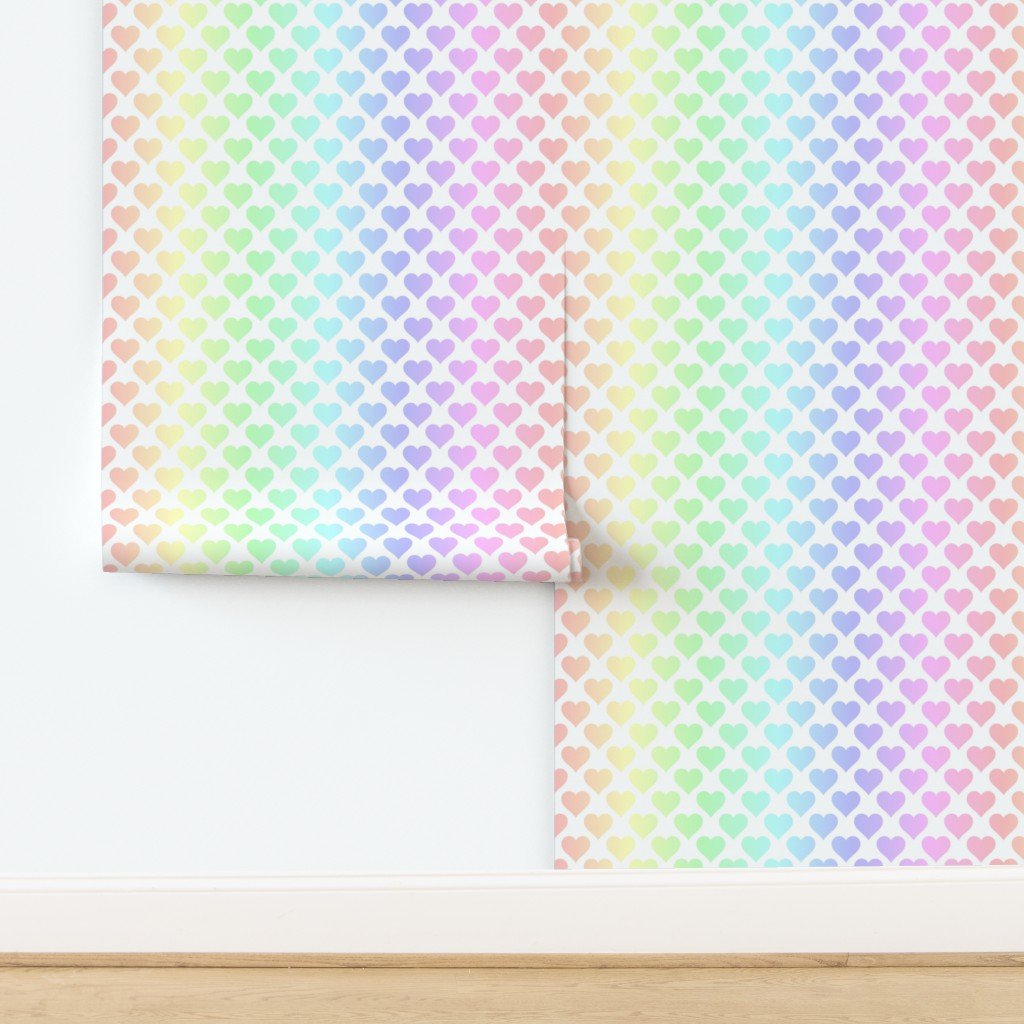 A gentle pastel rainbow heart pattern, perfect for adding a soft, cheerful touch to fabrics, decor, or crafts with a harmonious design.