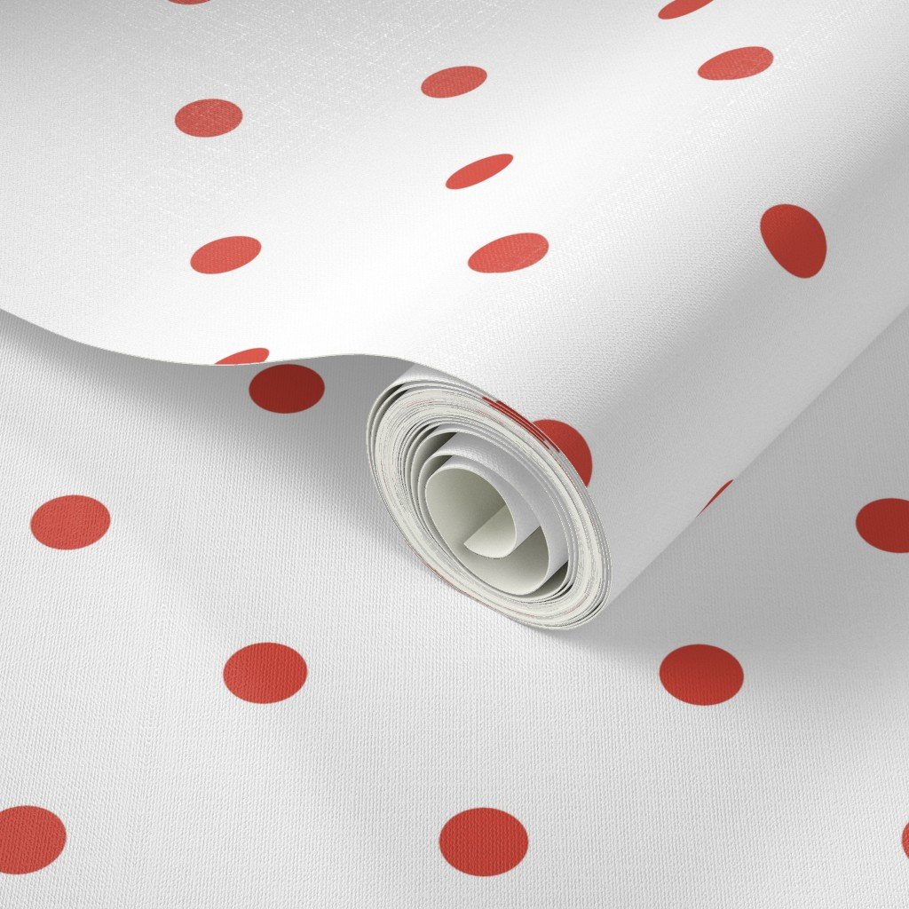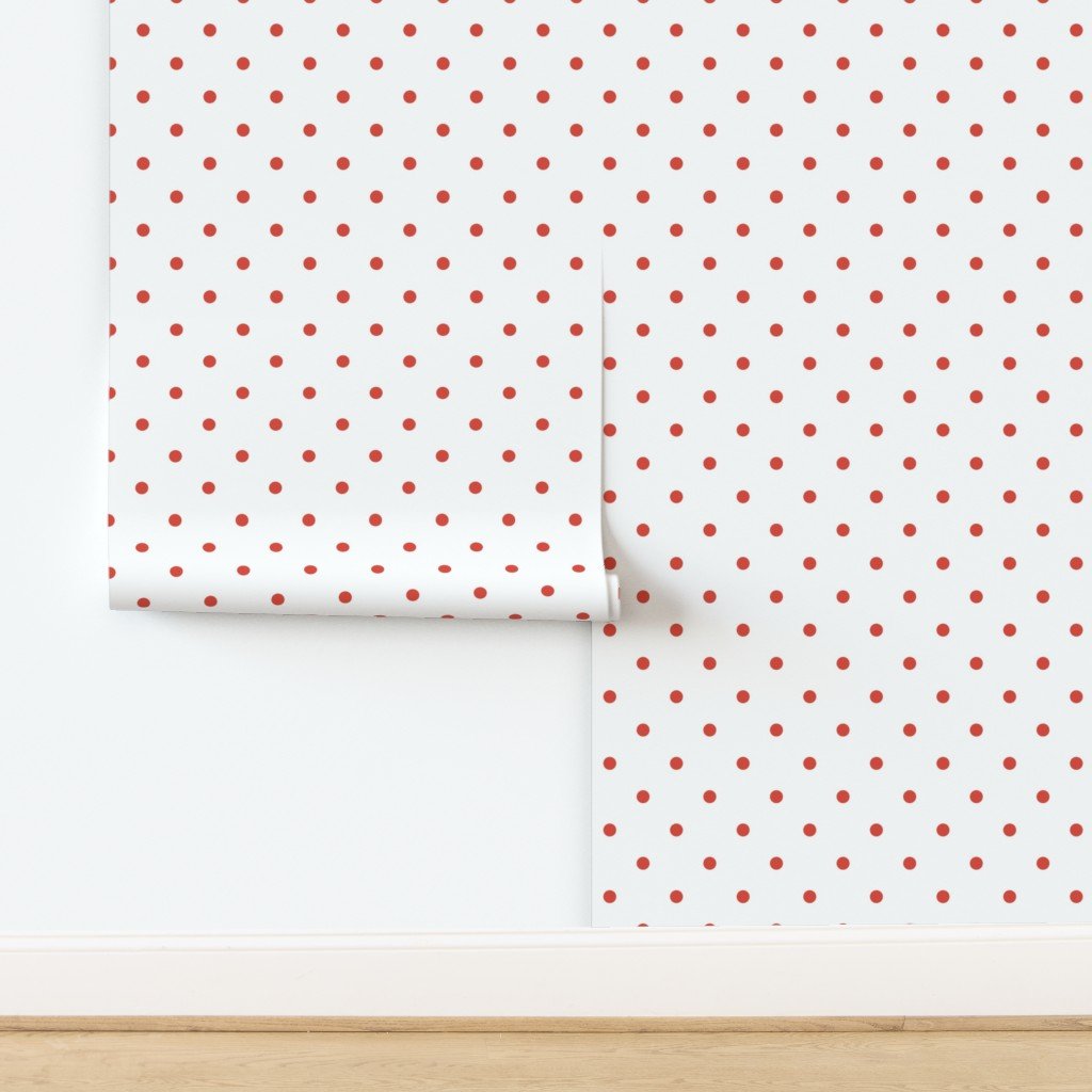 Punchy polka dots in red vermillion on vintage Christmas snowy white