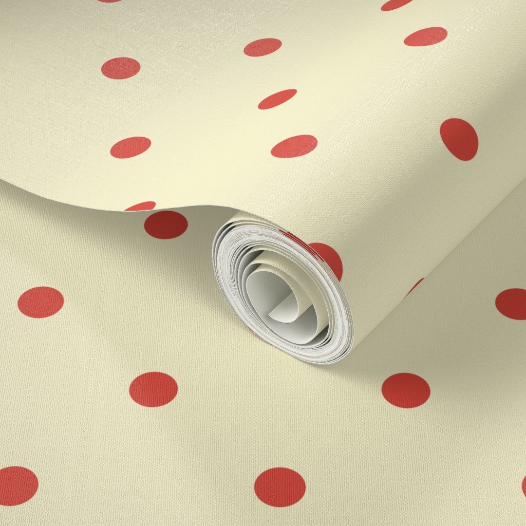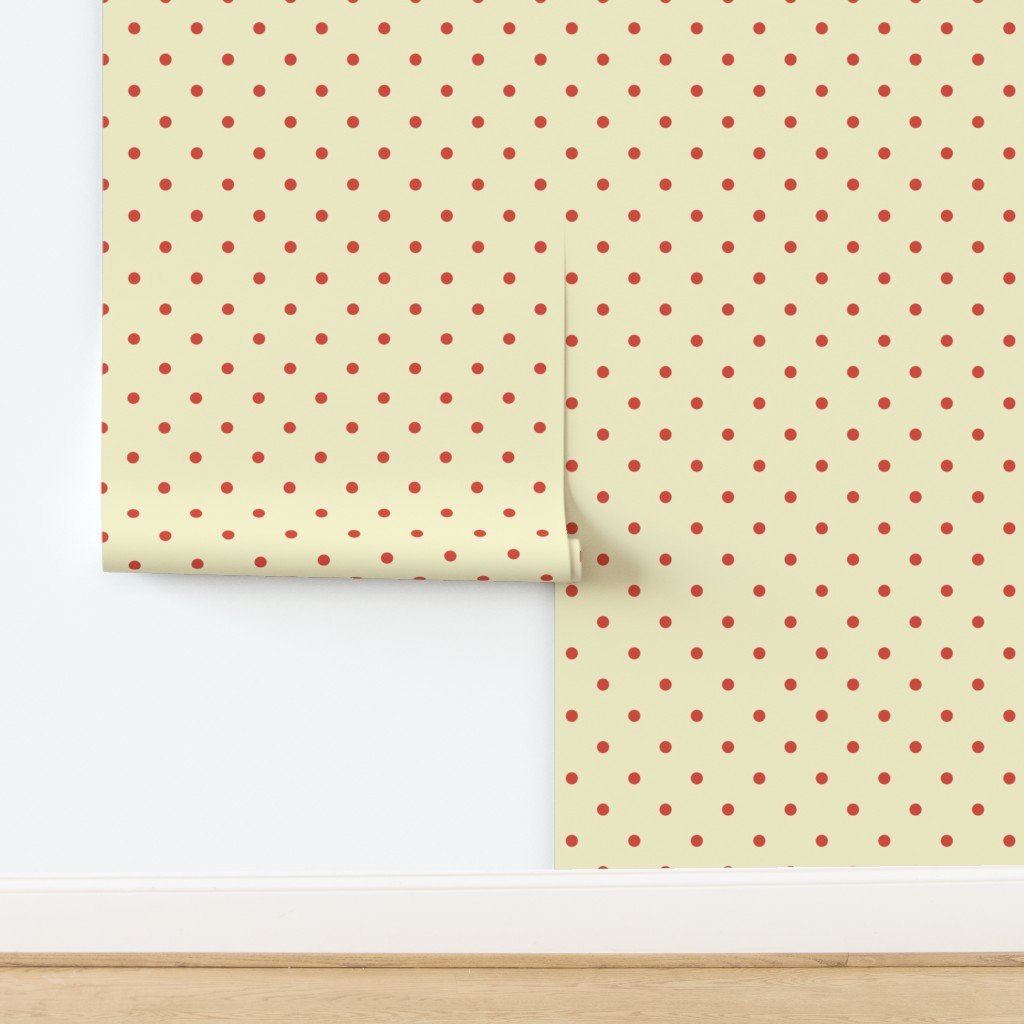 Punchy polka dots in red vermillion on vintage Christmas yellow gold
