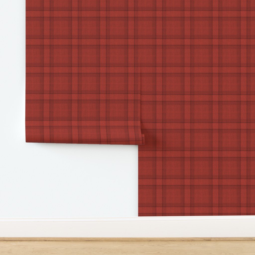 Weathered and faded wintery shades of red vermillion in a vintage Christmas tartan plaid