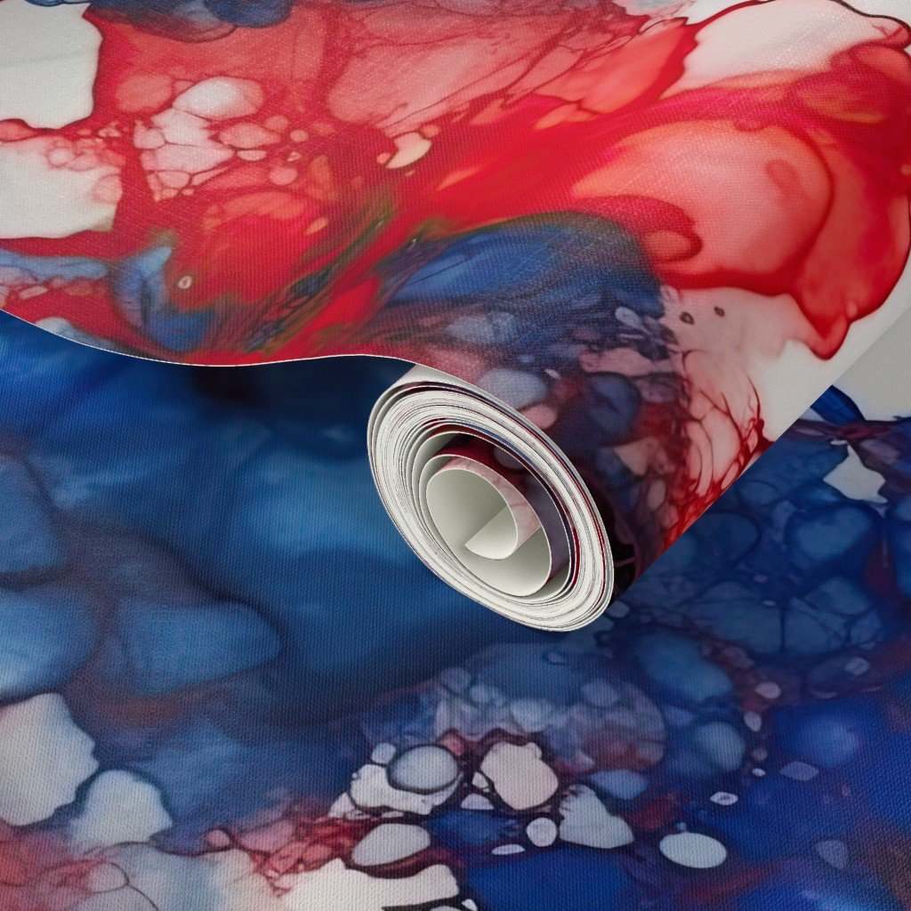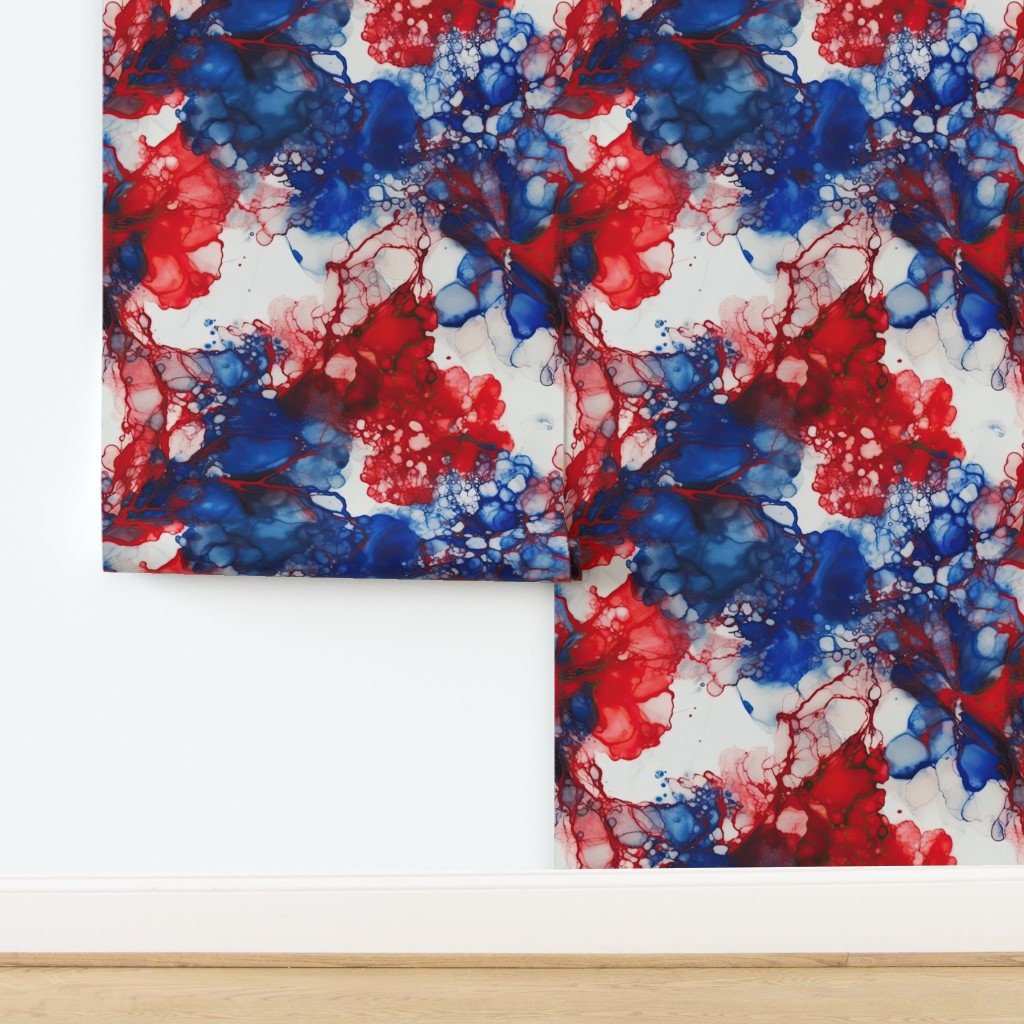 Alcohol ink swirls and marbles patriotic American flag colors of red, white and blue