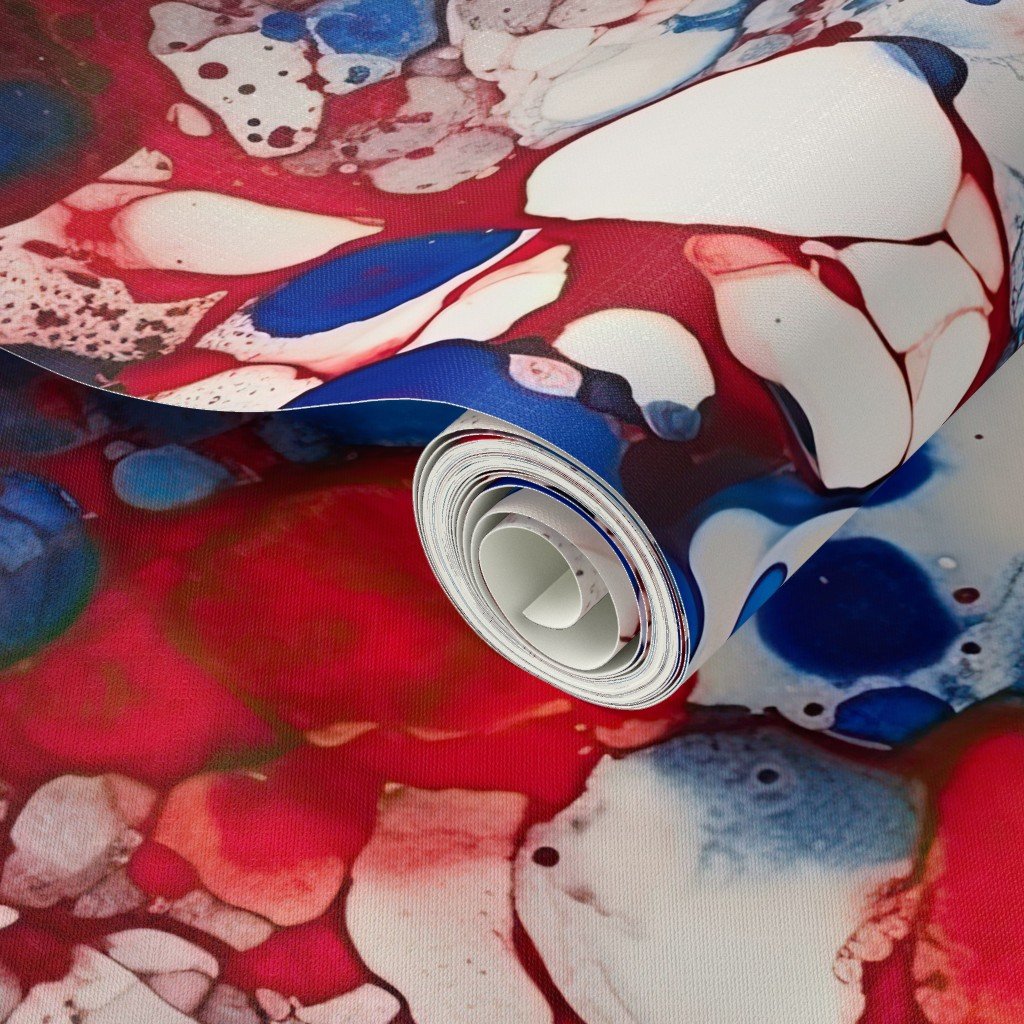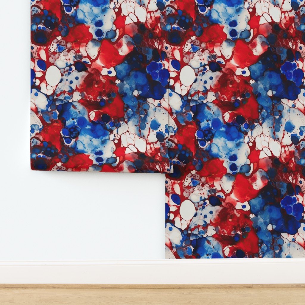 Alcohol ink swirls and marbles patriotic French flag colors of red, white and blue