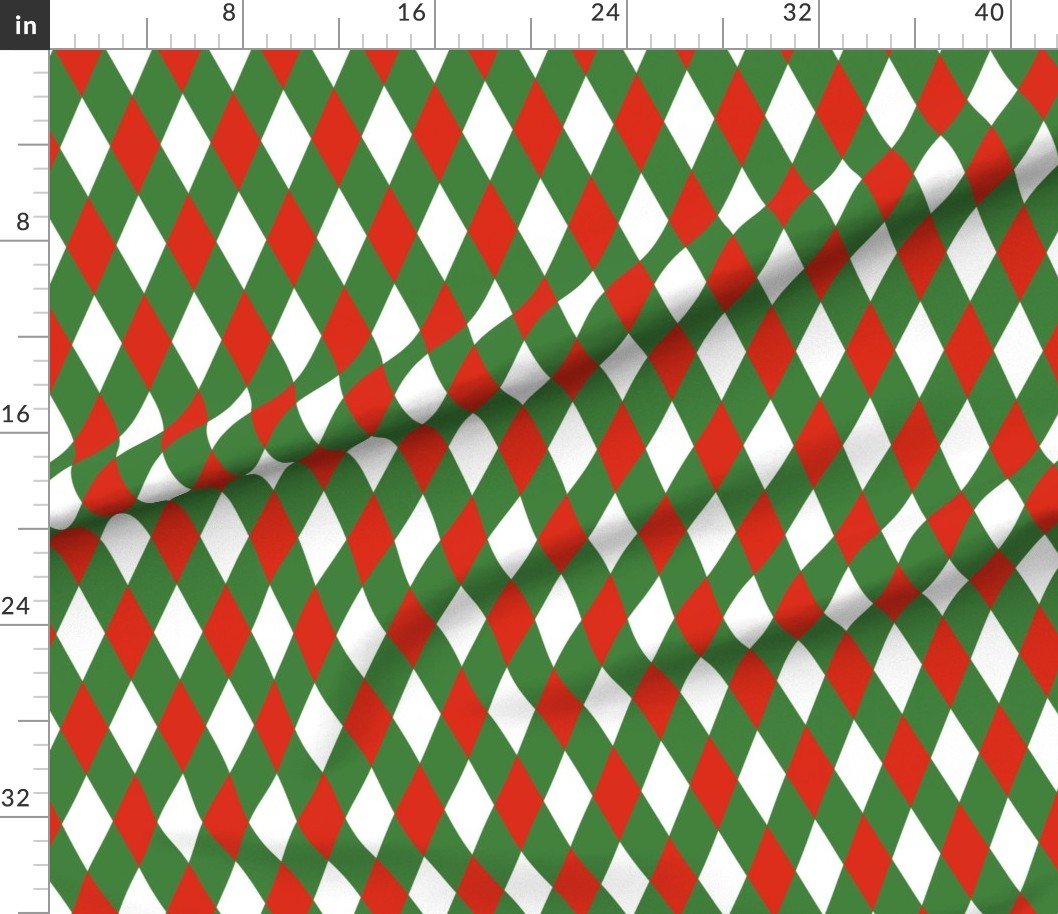 Geometric diamond harlequin pattern in Christmas Red and Green in 2 inch size