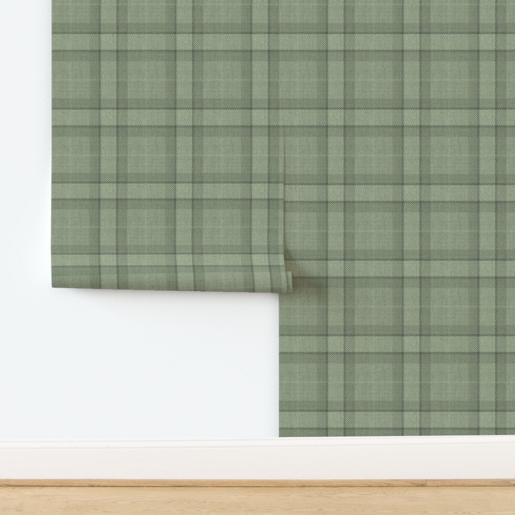Sage Green and Soft Olive Tartan Wool-Style Plaid Fabric Wallpaper