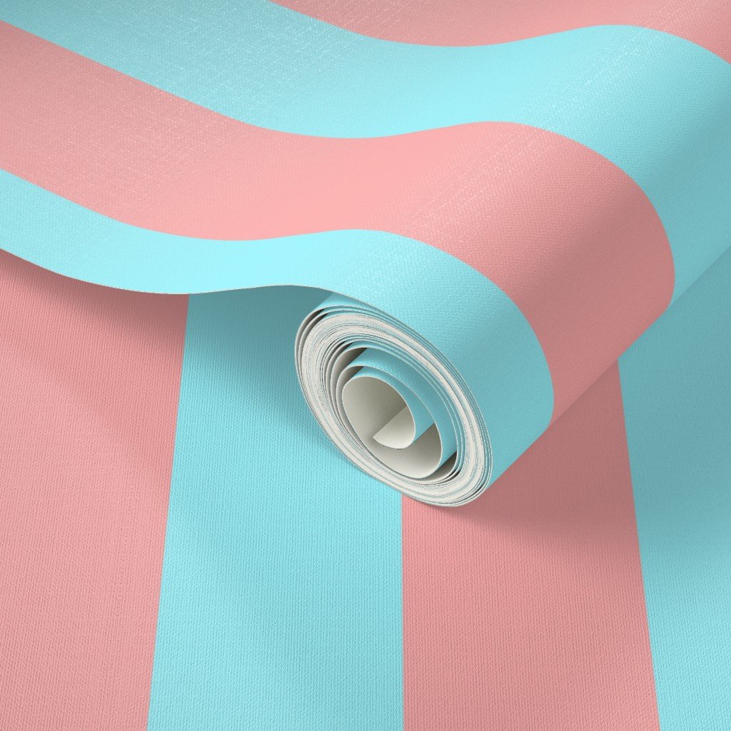 Sand Pink and Aqua Pool Pastel Summer Gazebo Stripes 3 inch wide alternating striped pattern