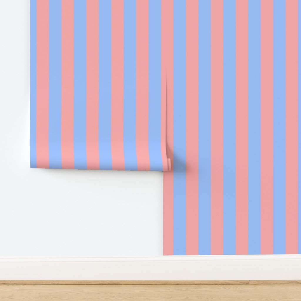 Sand Pink and Deep End Blue Pastel Summer Gazebo Stripes 3 inch wide alternating striped pattern