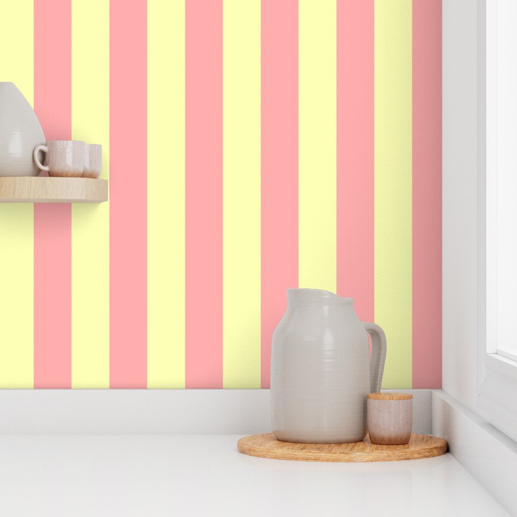 Sand Pink and Lemonade Pastel Yellow Summer Gazebo Stripes 3 inch wide alternating striped pattern