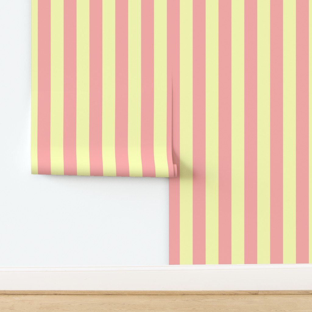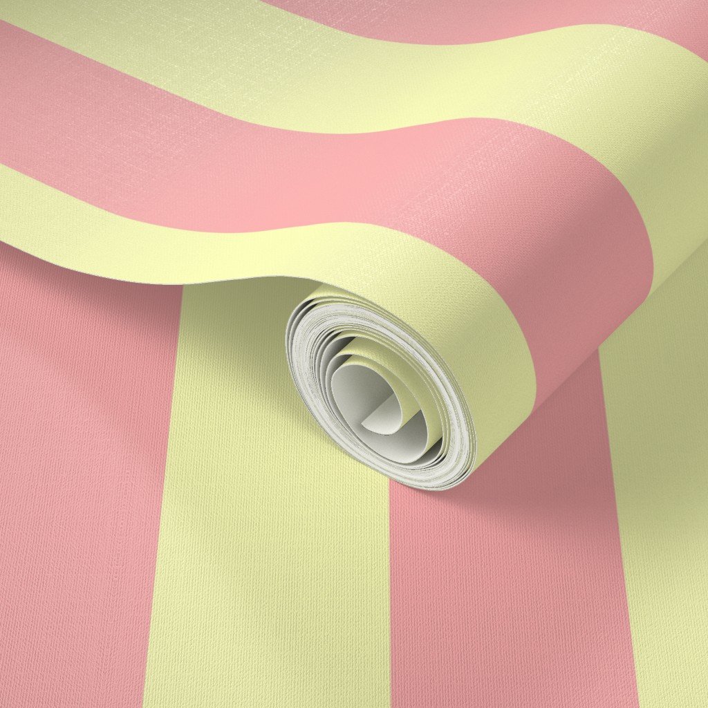 Sand Pink and Lemonade Yellow Summer Gazebo Stripes 3 inch Wallpaper