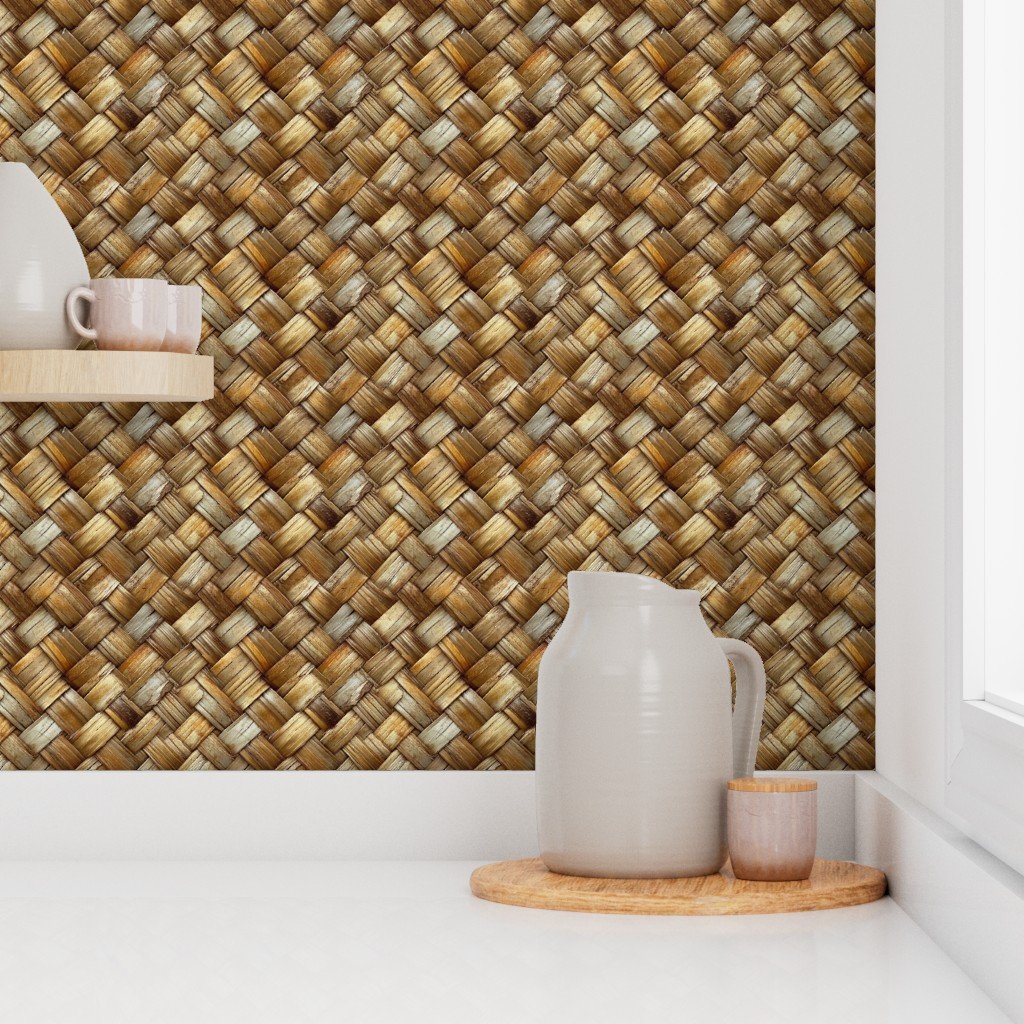 Natural Woven Wood Texture.’ This design captures the essence of artisanal weaving techniques, featuring a rich tapestry of interlaced wooden strips.