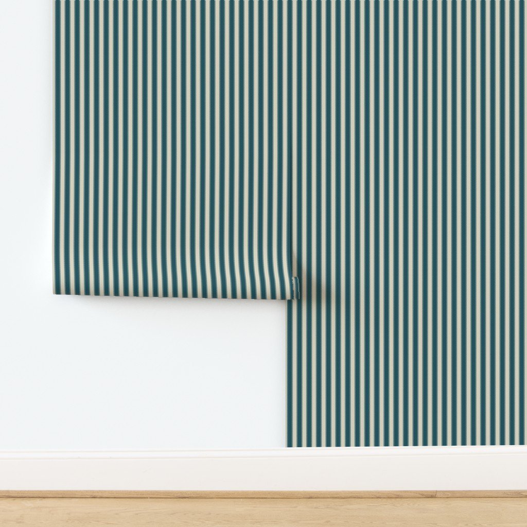 Serrated Blue Crab Small Stripe on Cream Wallpaper