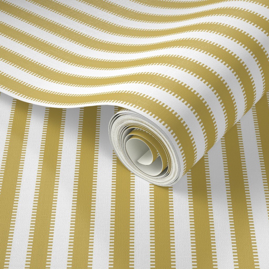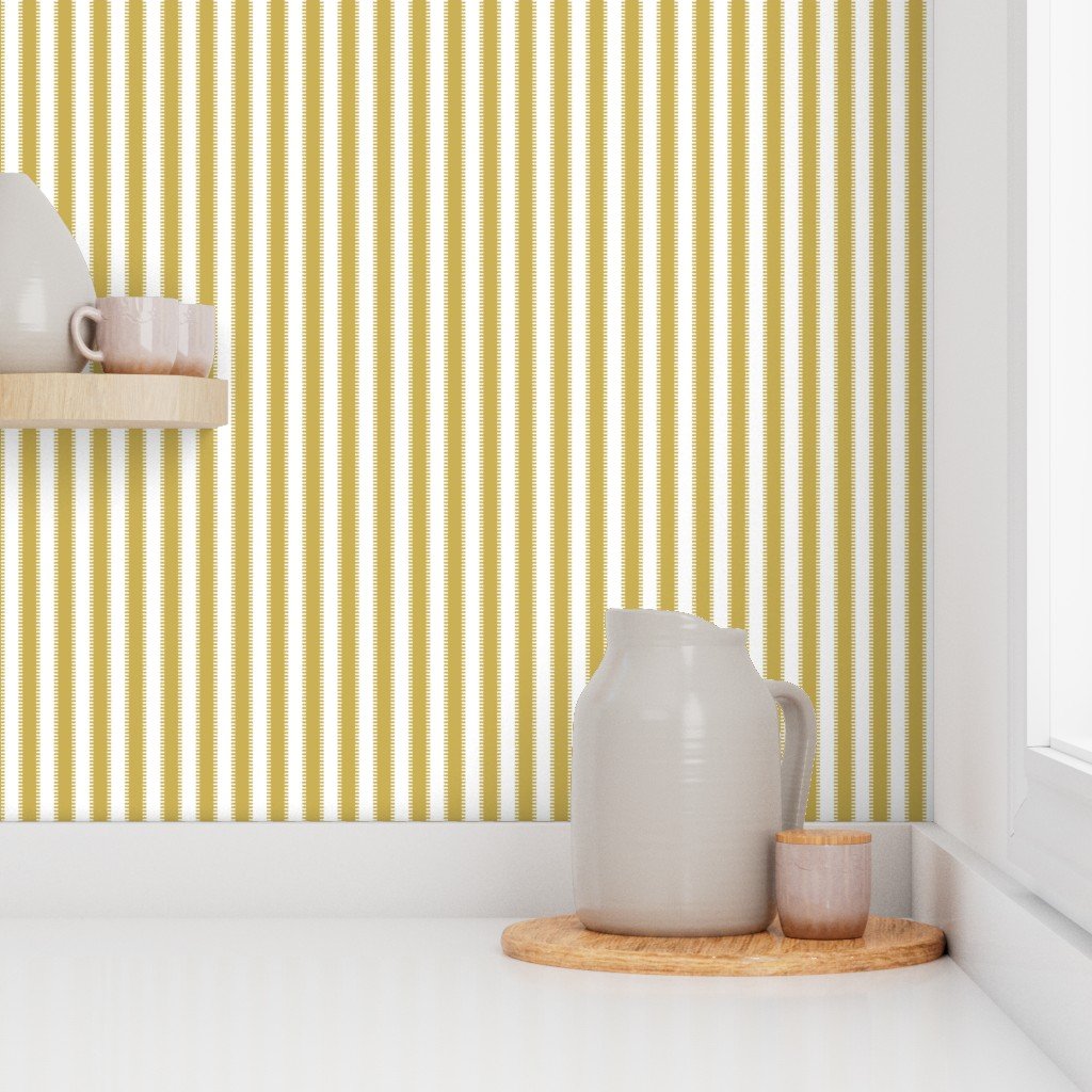 Serrated Gold Garland Small Stripe on White Wallpaper