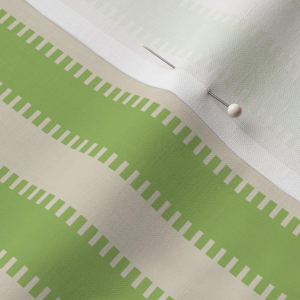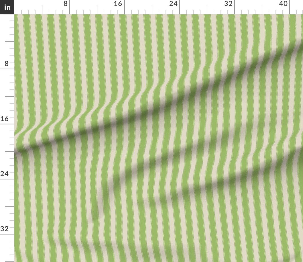 With its stylized jagged edge, this serrated edge on classic stripes modern stripes in Kelp Green with Cream adds a bold design flair to home furnishings