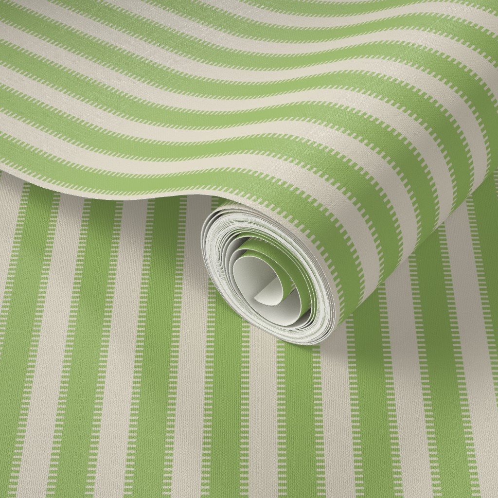 Serrated Kelp Green Small Stripe on Cream Wallpaper