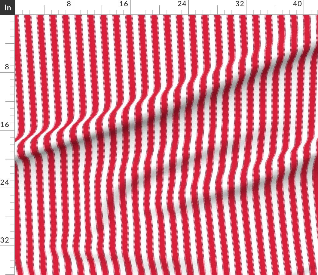 Fabric in Serrated Peppermint Red Classic Stripe on White
