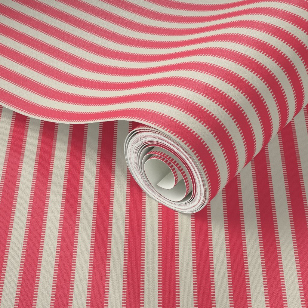 With its stylized jagged edge, this serrated edge on mini stripes modern stripes in Pompano Red with Cream adds a bold design flair to home furnishings
