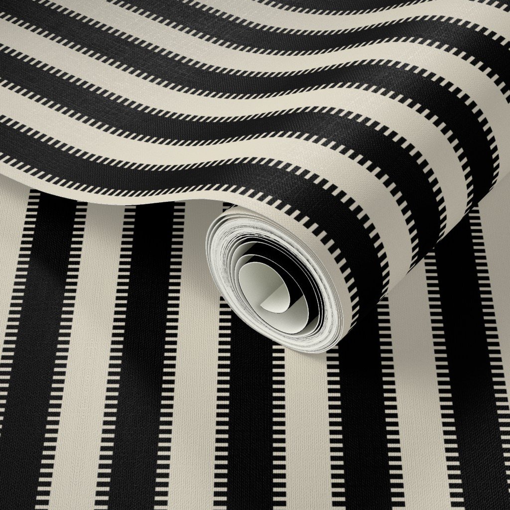 With its stylized jagged edge, this serrated edge on classic stripes modern stripes in Squid Ink Black with Cream adds a bold design flair to home furnishings