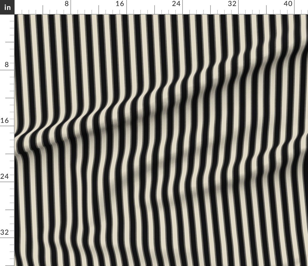 With its stylized jagged edge, this serrated edge on classic stripes modern stripes in Squid Ink Black with Cream adds a bold design flair to home furnishings