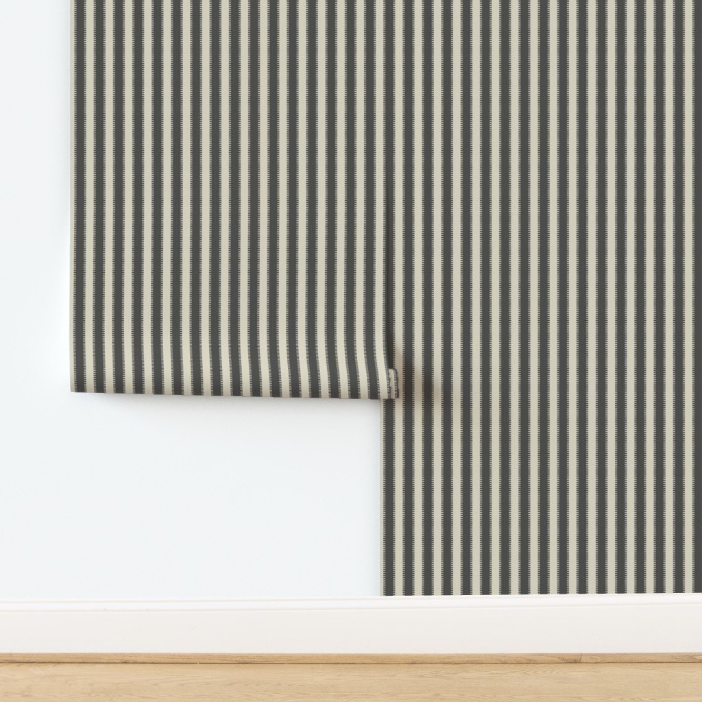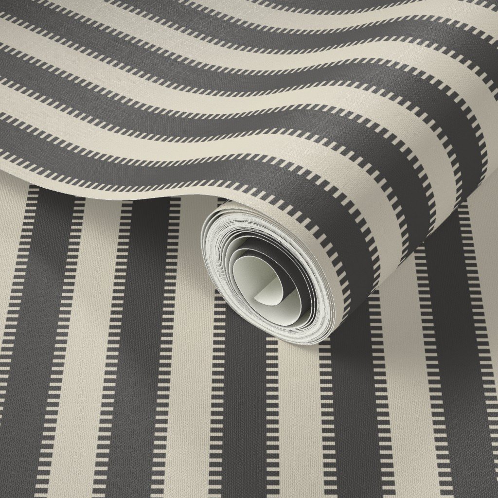 With its stylized jagged edge, this serrated edge on classic stripes modern stripes in Stingray Grey with Cream adds a bold design flair to home furnishings