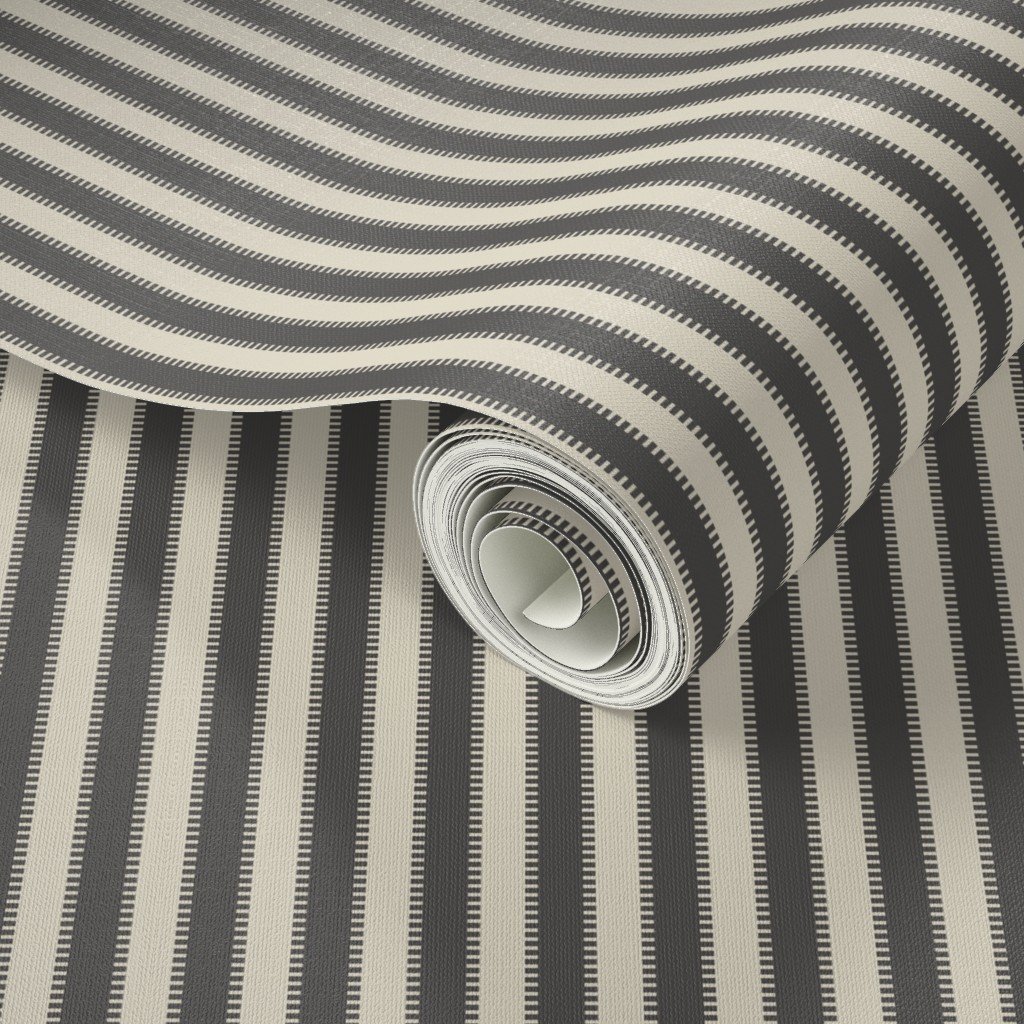Serrated Stingray Grey Mini Stripe on Cream Wallpaper