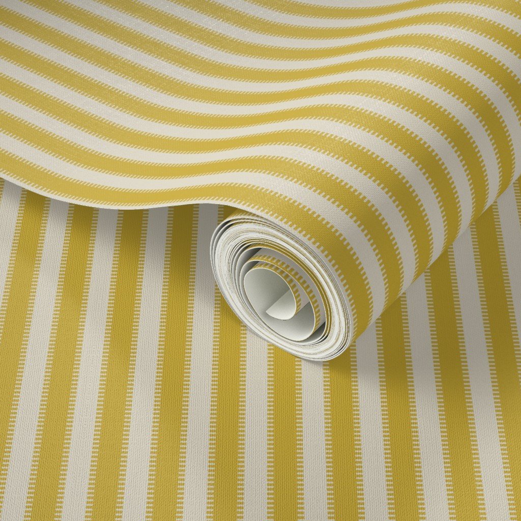 With its stylized jagged edge, this serrated edge on mini stripes modern stripes in Sunfish Gold with Cream adds a bold design flair to home furnishings