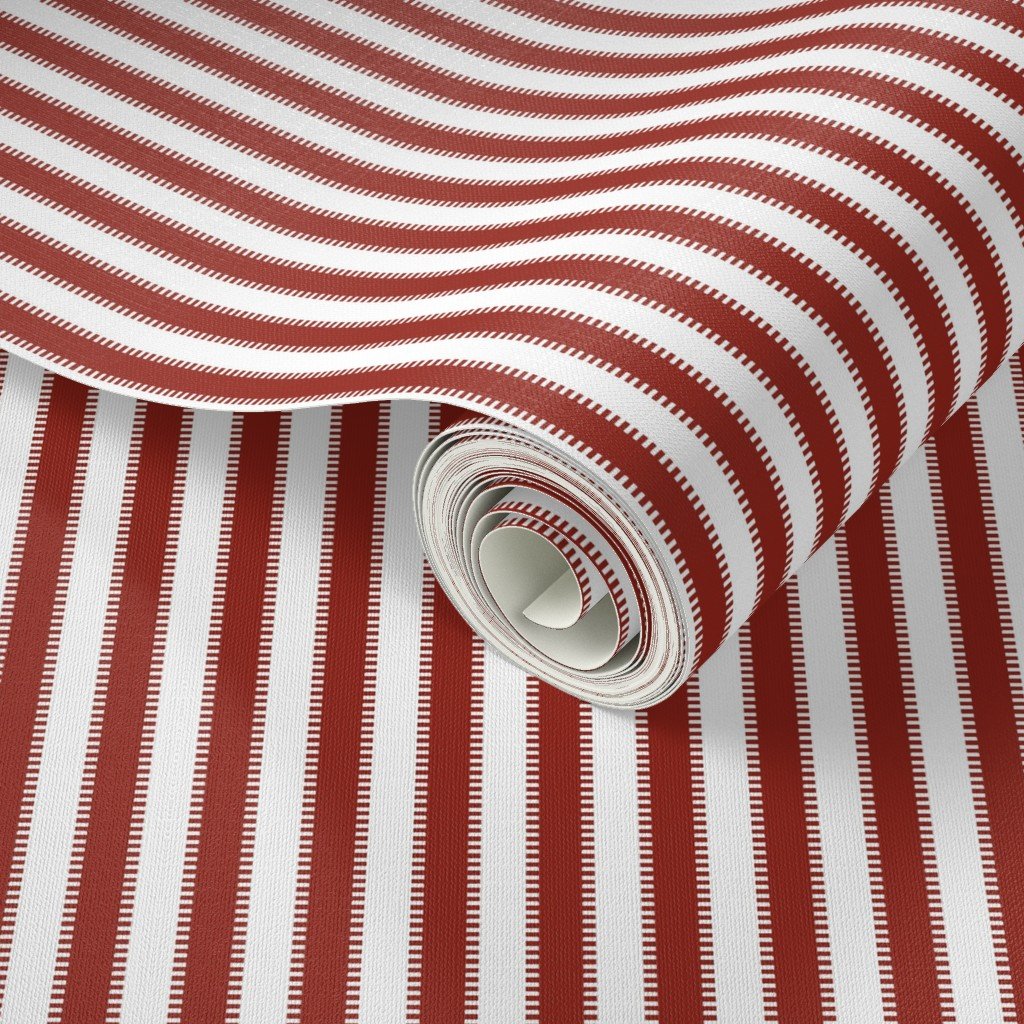 Serrated Winterberry Red Lace Mini Stripe on White Wallpaper