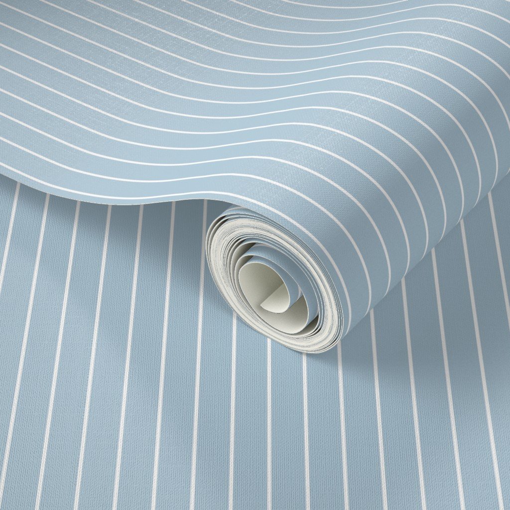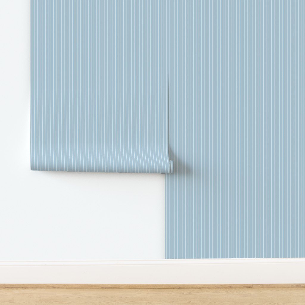 Thin half inch vertical pin stripes in in sky blue and white French Provincial Winter collection