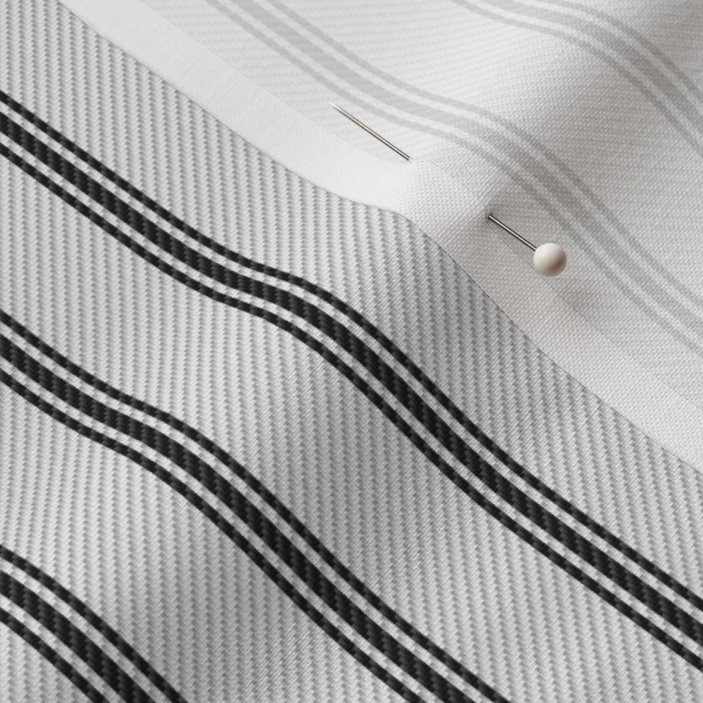 Medium Coal Black Antique Vintage Mattress Ticking Stripe on Cream Lumbar Throw Pillow