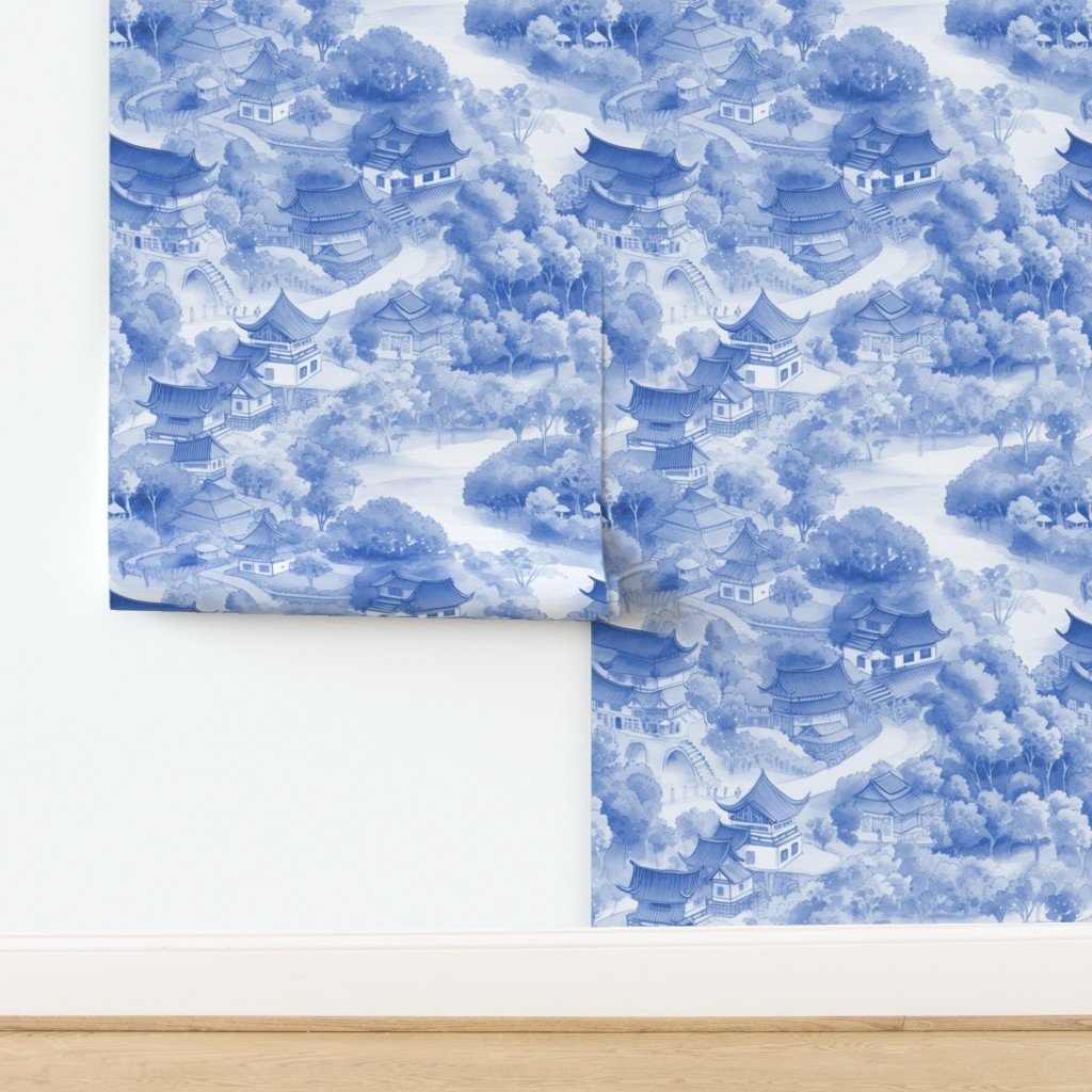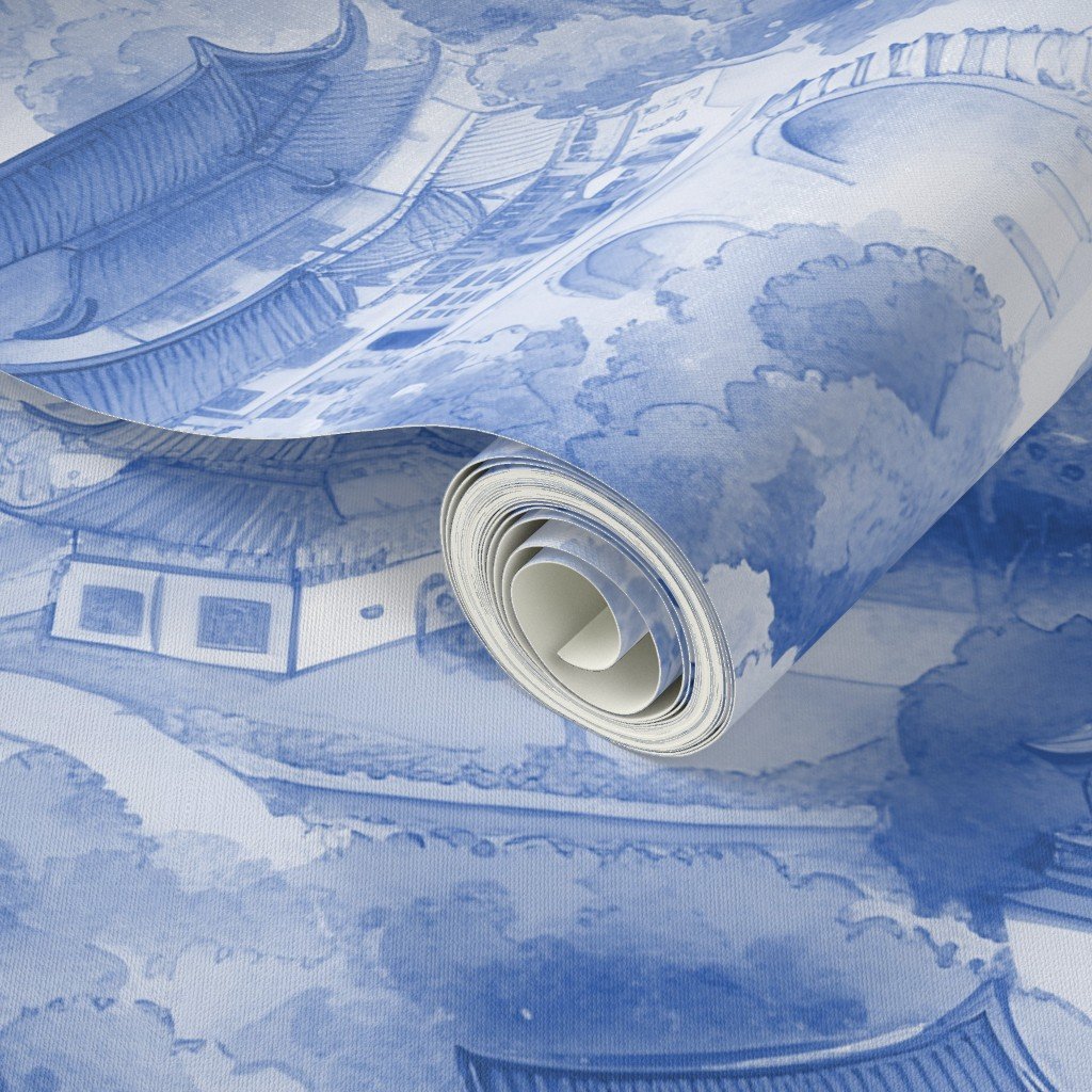 Small Chinese Village in Light Blue Porcelain Glaze Wallpaper