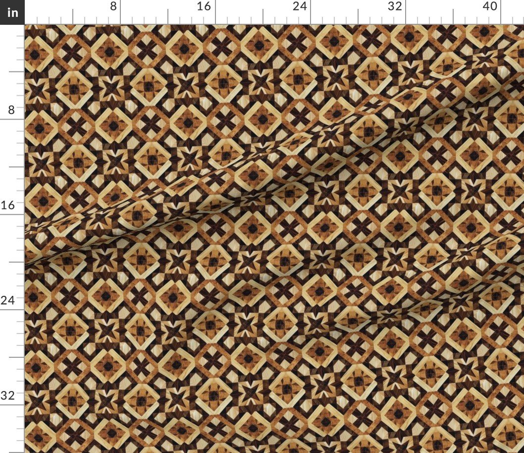 Fabric in Small Geometric Marquetry Wood Inlay Pattern in Rich Dark Wood Tones