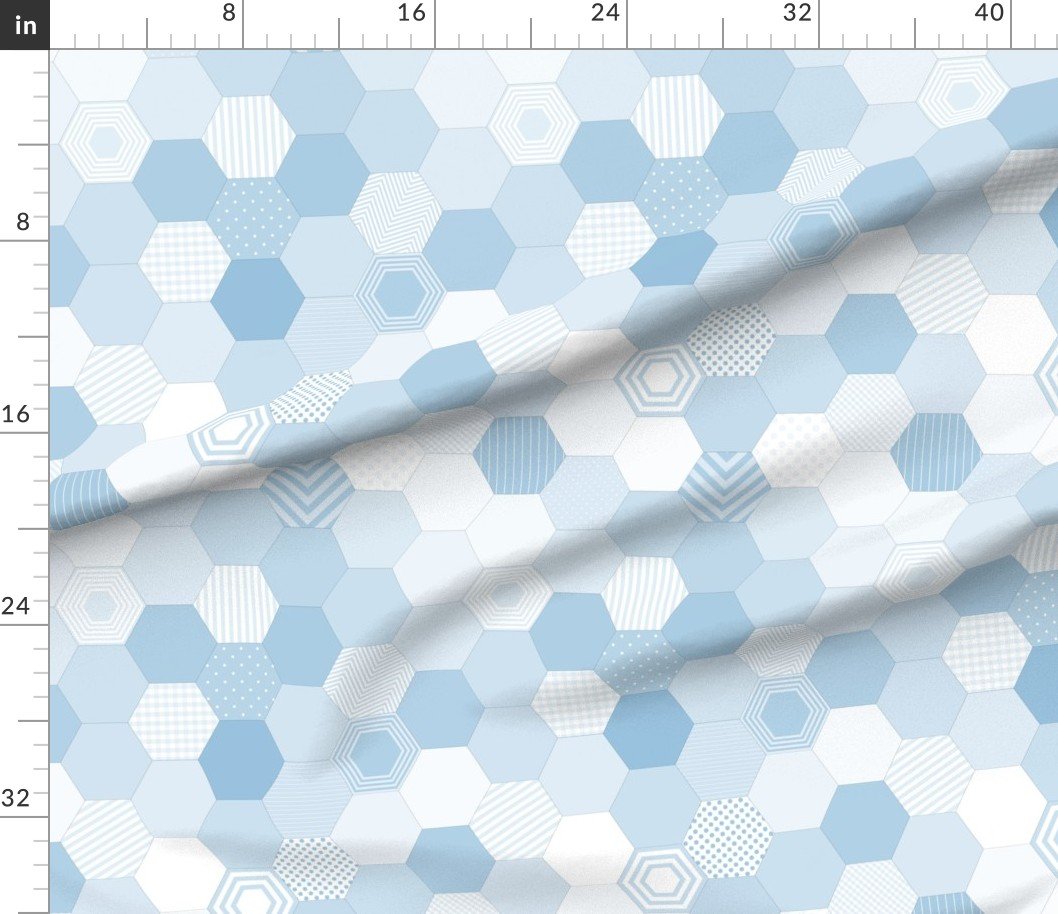 The smaller design features a seamless pattern of hexagons in various shades of blue. The hexagons are arranged in a honeycomb structure with random w