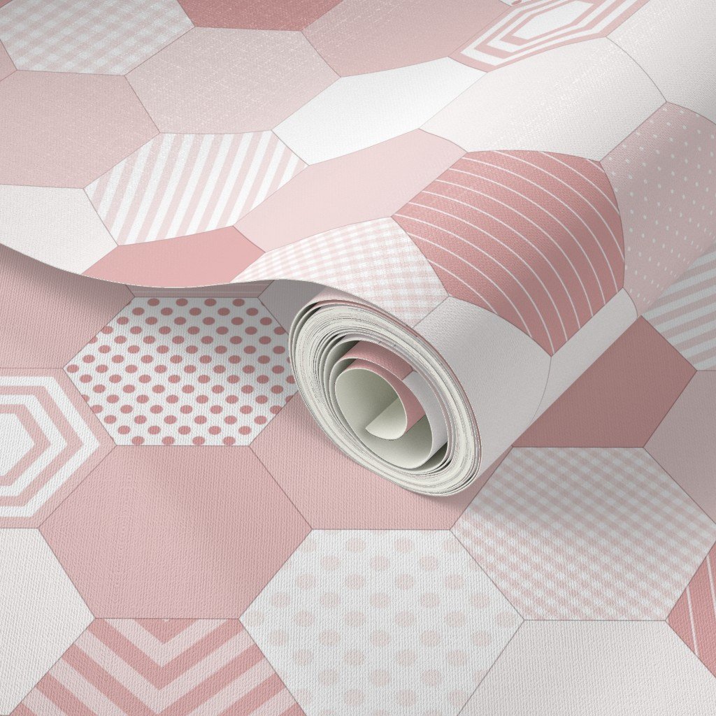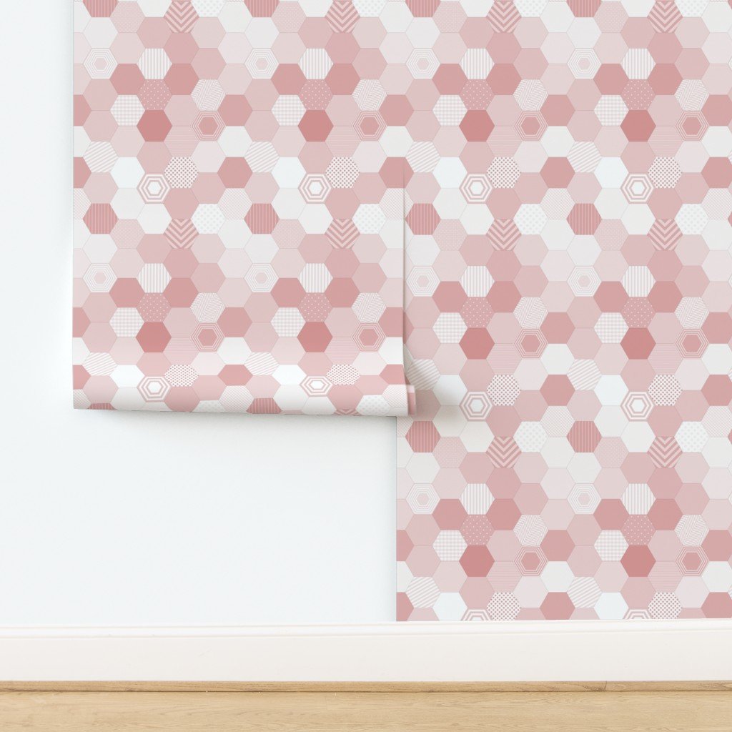 This smaller design presents a seamless pattern of hexagons in a range of blush pink shades. The hexagons are arranged in a honeycomb structure with r