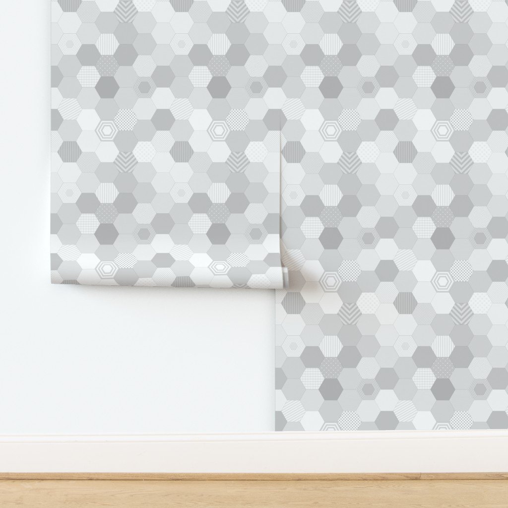 Small Hexagonal Grayscale Honeycomb Pattern Wallpaper