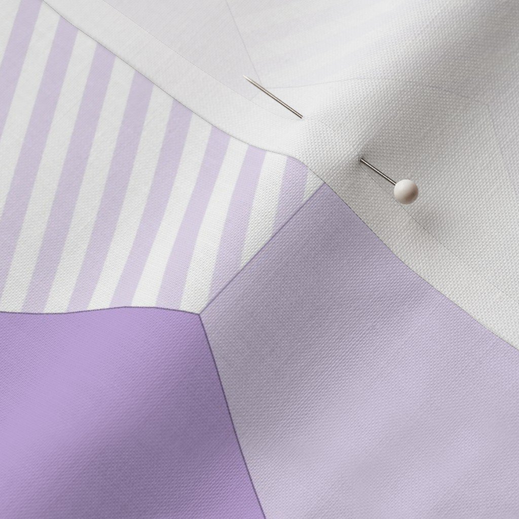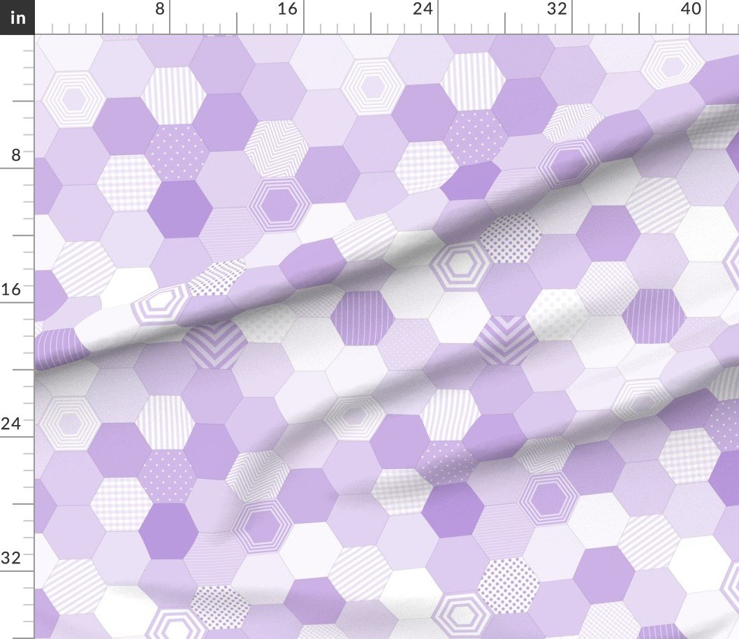 This smaller design presents a seamless pattern of hexagons in a range of lavender tones . The hexagons are arranged in a honeycomb structure with ran